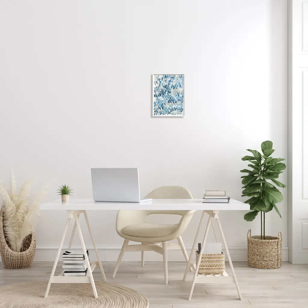 Stupell Coastal Tile Abstract Soft Blue Beige Shapes Framed Wall Art - 11 X 14 - White