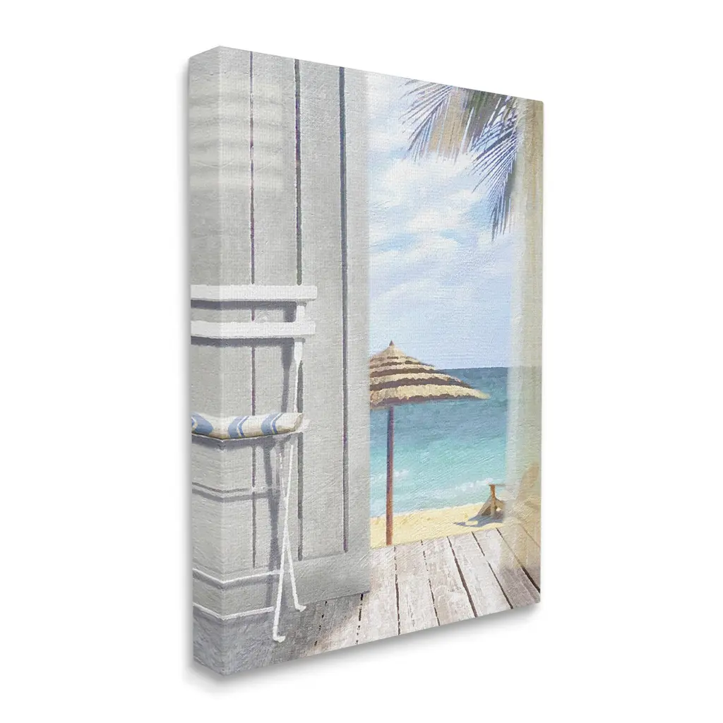 We create our stretched canvas to the highest standards. Using only the highest quality inks and canvas on Mimaki printers, we hand-cut and stretch each piece over a 1.5-inch thick wooden frame for hanging. As a result, the art comes ready to hang on the sturdy ledge with no installation required. Stupell Wall Art is made in the USA.Features: Dimensions: 16 x 1.5 x 20 InchesStretched Canvas Sizes Include Standard: 16 x 1.5 x 20 Large: 20 x 1.5 x 30 X-Large: 30 x 1.5 x 40 Oversized: 36 x 1.5 x 48Wall Art is Ready to Hang - No Installation or Hardware Needed. For Easy Set Up Lean or Layer Artwork on Shelf or Against Wall.Our stretched canvas is created with the highest standards. We use only the highest quality inks and canvas on our in house Mimaki printers, and then hand cut and stretch each piece over a 1.5 inch thick wooden frame for hanging. Made In USA.Artwork Relates To: Summer, Beach, Coast, Nature, Outdoors, Sea, Shoreline, Water, PorchDesign by Noah Bay