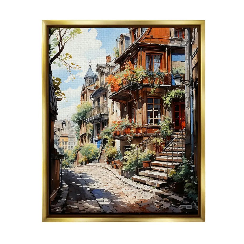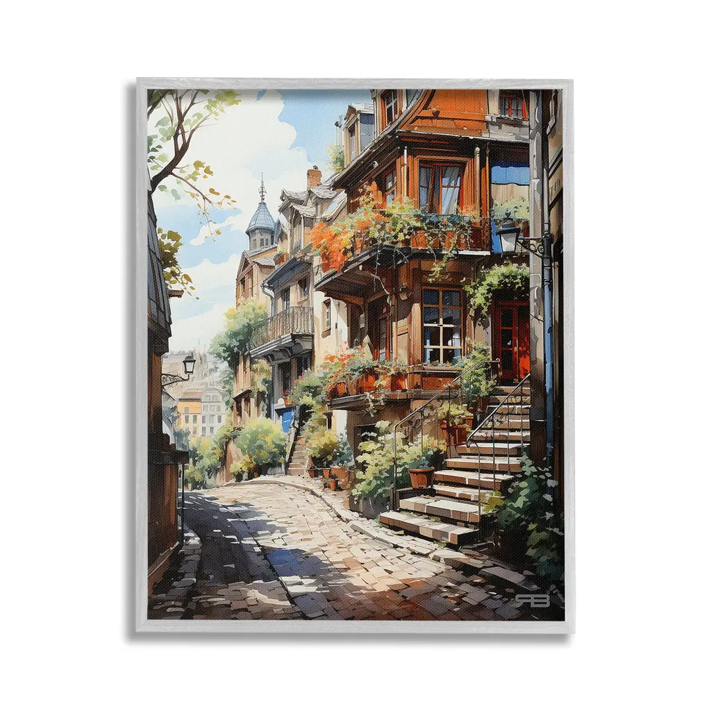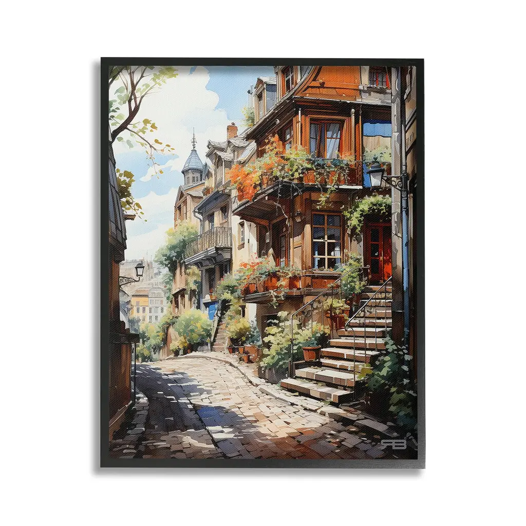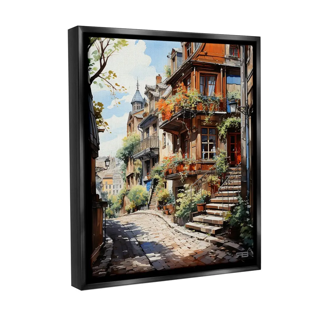 Stupell Cobblestone Walkway In Town Framed Floater Canvas Wall Art Design By Rb - 17 X 21 - Black