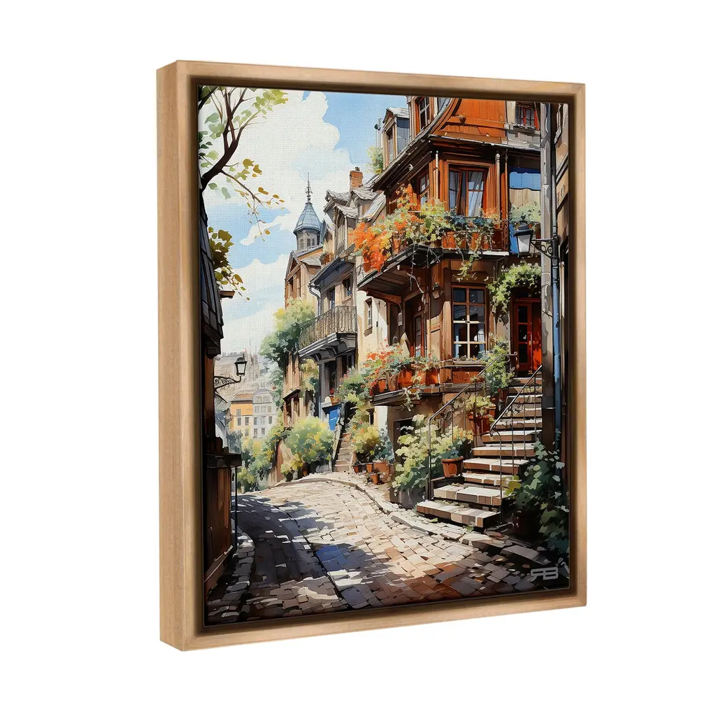 Stupell Cobblestone Walkway In Town Framed Floater Canvas Wall Art Design By Rb - 17 X 21 - Brown