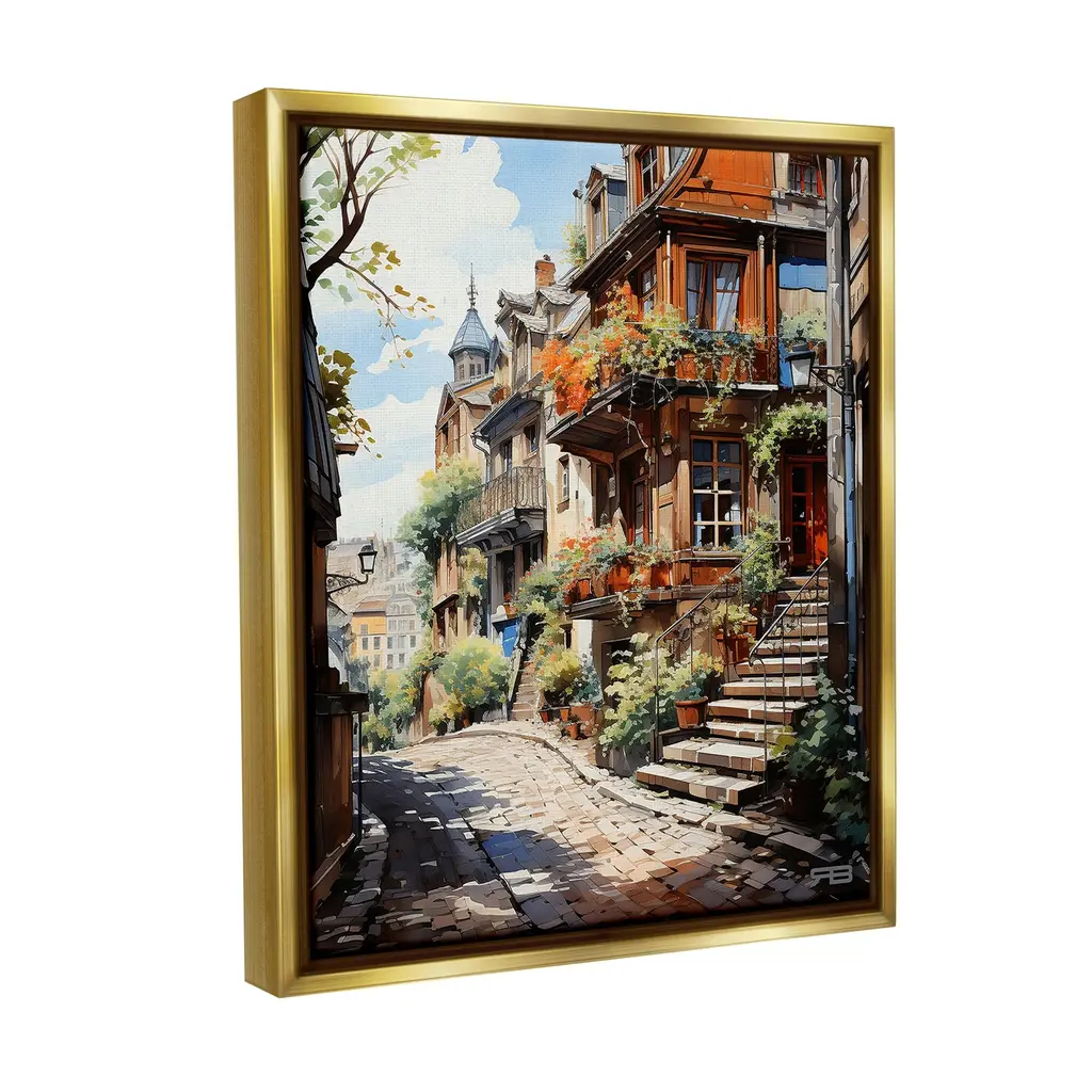 Stupell Cobblestone Walkway In Town Framed Floater Canvas Wall Art Design By Rb - 17 X 21 - Gold