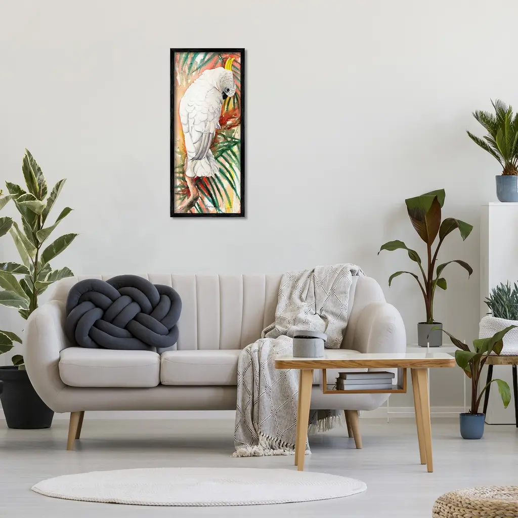 Add dimension to any room with our textured Framed Giclee Artwork. Our framed artwork is securely mounted into a 1.5-inch thick wood grain frame and ready to hang. Frames are available in three alluring styles: black, gray farmhouse and white. In addition, you should check out our oversized options if you want a statement piece. Stupell Wall Art is made in the USA.Features: Dimensions: 10 x 1.5 x 24 FramedFramed Giclee Product Sizes include 10"x24" and 13"x30". All Framed Giclee products have a 1.5" Depth.Wall Art is Ready to Hang with Hardware Free Hanging. No installation required. For Easy Set Up Lean or Layer Artwork on Shelf or Against Wall.Our giclée prints are carefully mounted on a durable MDF backing, and then perfectly finished in a 1.5 inch thick woodgrain frame. Mounted frame colors include black, gray farmhouse and white. Made In USA.Artwork Relates To: Animal, Bird, Parrot, Cockatoo, Cockatiel, Leaf, Plant, Botanical, Rainforest, NatureDesign by Christine Reichow