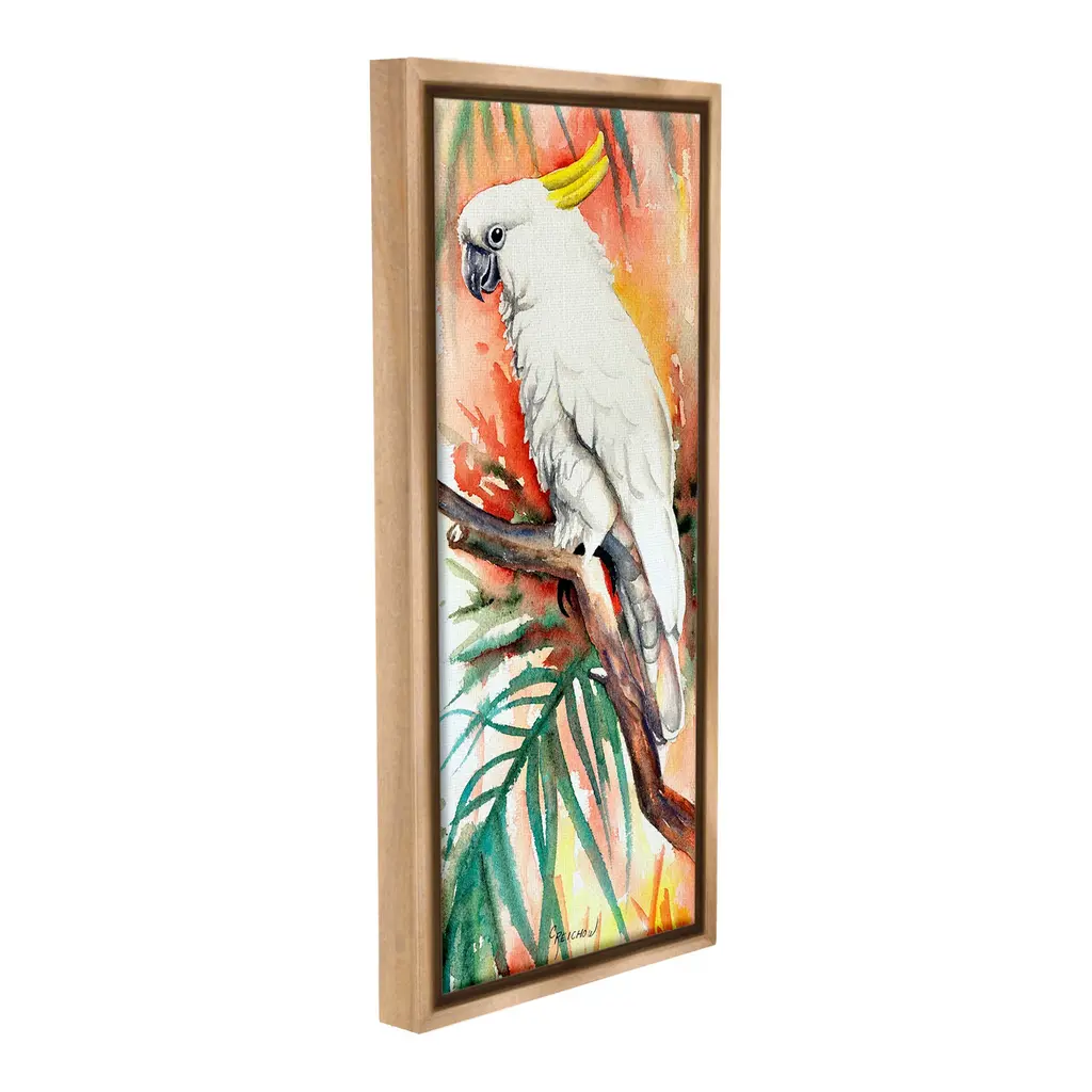 Elevate your home or office to the next level with Stupell Framed Floating Canvas Wall Art. Our premium hand-stretched canvas is mounted securely into a sturdy lightweight frame. The museum-style gap between the wrapped canvas and the box frame gives the illusion of floating artwork. Stupell Wall Art is made in the USA.Features: Dimensions: 11 x 1.7 x 25 Frame, 10 x 1.5 x 24 Canvas ArtFloating Frame Canvas Products are available in sizes 11"x25" and 14"x31". All Floating Frame Canvas Products have a 1.7" Depth.Wall Art is Ready to Hang with Hardware Free Hanging. No Installation required. For Easy Set Up Lean or Layer Artwork on Shelf or Against Wall. Artwork is Permently Fixed into the Frame.Our elevated 1.7" Thick Floating Frame is the perfect complement to our canvas style Wall Art. We use only the highest quality inks in house with industry leading printing solutions. Canvas is hand stretched over a durable wood foundation and then mounted securly into a Modern Box Frame. Made in the USA.Artwork Relates To: Animal, Bird, Parrot, Cockatoo, Cockatiel, Leaf, Plant, Botanical, Rainforest, NatureDesign by Christine Reichow
