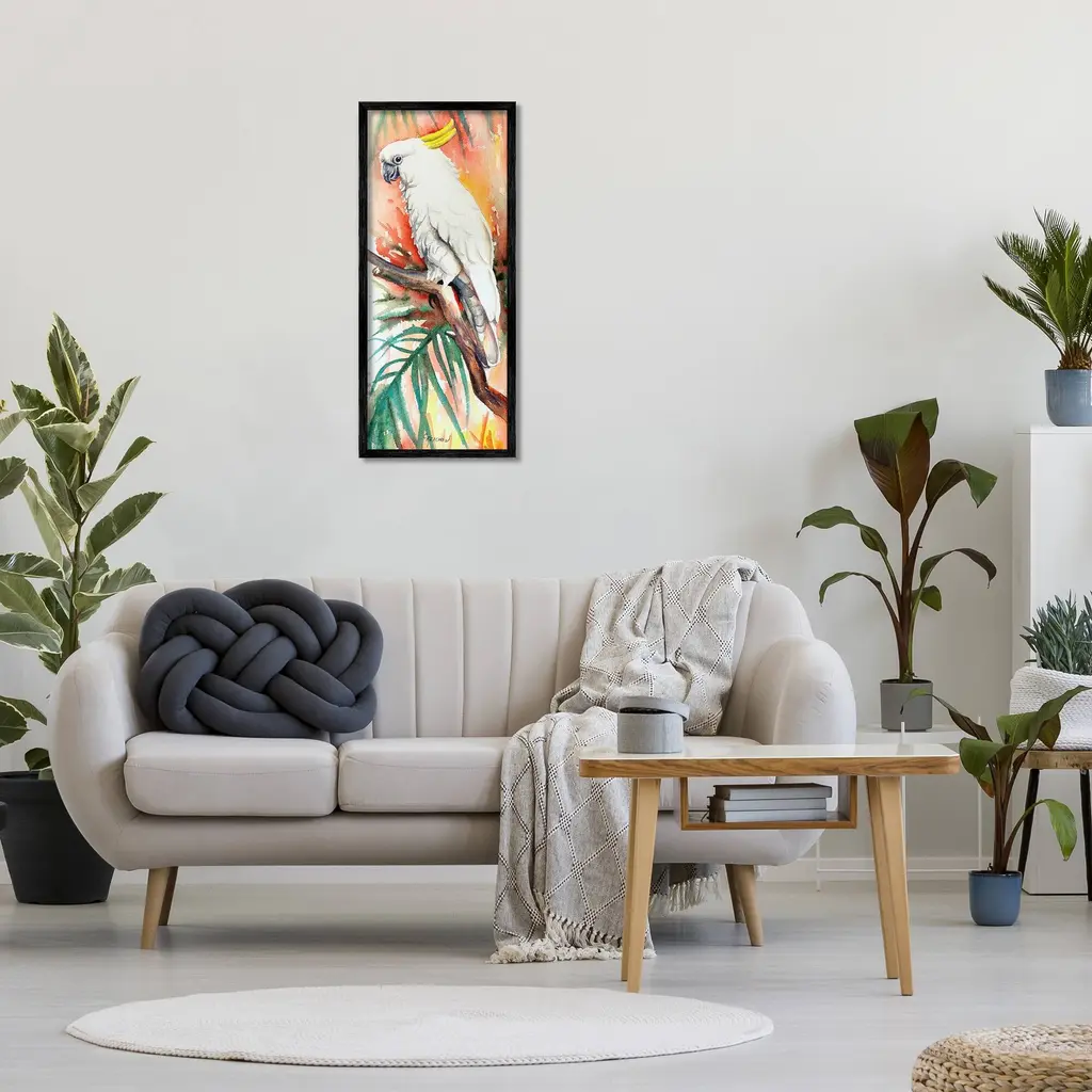 Add dimension to any room with our textured Framed Giclee Artwork. Our framed artwork is securely mounted into a 1.5-inch thick wood grain frame and ready to hang. Frames are available in three alluring styles: black, gray farmhouse and white. In addition, you should check out our oversized options if you want a statement piece. Stupell Wall Art is made in the USA.Features: Dimensions: 10 x 1.5 x 24 FramedFramed Giclee Product Sizes include 10"x24" and 13"x30". All Framed Giclee products have a 1.5" Depth.Wall Art is Ready to Hang with Hardware Free Hanging. No installation required. For Easy Set Up Lean or Layer Artwork on Shelf or Against Wall.Our giclée prints are carefully mounted on a durable MDF backing, and then perfectly finished in a 1.5 inch thick woodgrain frame. Mounted frame colors include black, gray farmhouse and white. Made In USA.Artwork Relates To: Animal, Bird, Parrot, Cockatoo, Cockatiel, Leaf, Plant, Botanical, Rainforest, NatureDesign by Christine Reichow