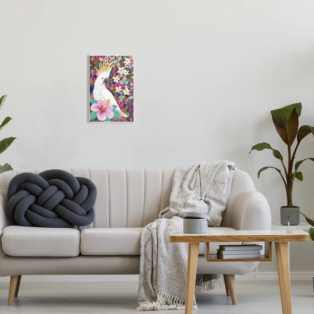 Stupell Cockatoo With Floral Hibiscus Wall Plaque Art Design By Cat Thurman Designs - 10 X 15