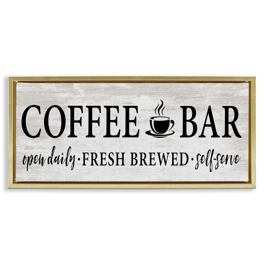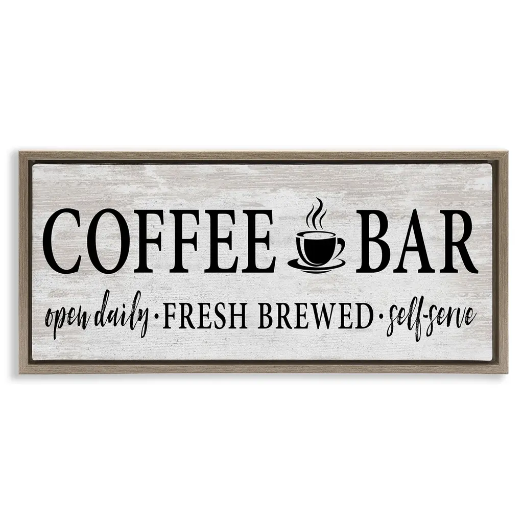 Elevate your home or office to the next level with Stupell Framed Floating Canvas Wall Art. Our premium hand-stretched canvas is mounted securely into a sturdy lightweight frame. The museum-style gap between the wrapped canvas and the box frame gives the illusion of floating artwork. Stupell Wall Art is made in the USA.Features: Dimensions: 25 x 1.7 x 11 Frame, 24 x 1.5 x 10 Canvas ArtFloating Frame Canvas Products are available in sizes 25"x11" and 31"x14". All Floating Frame Canvas Products have a 1.7" Depth.Wall Art is Ready to Hang with Hardware Free Hanging. No Installation required. For Easy Set Up Lean or Layer Artwork on Shelf or Against Wall. Artwork is Permently Fixed into the Frame.Our elevated 1.7" Thick Floating Frame is the perfect complement to our canvas style Wall Art. We use only the highest quality inks in house with industry leading printing solutions. Canvas is hand stretched over a durable wood foundation and then mounted securly into a Modern Box Frame. Made in the USA.Artwork Relates To: Kitchen, Rustic, Vintage, Coffee, MugDesign by Lettered and Lined