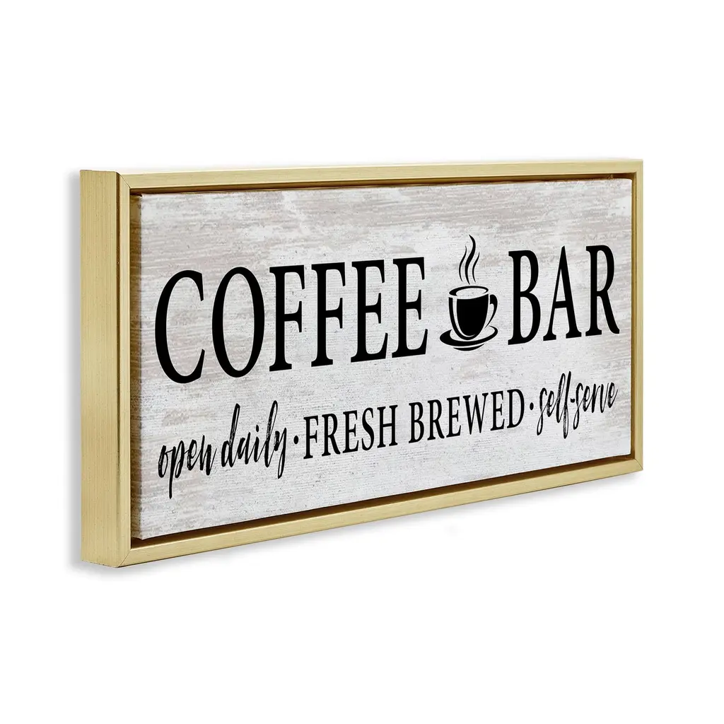 Stupell Coffee Bar Cafe Rustic Sign Framed Floater Canvas Wall Art Design By Lettered And Lined - 25 X 11 - Gold