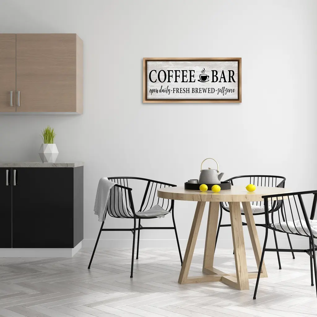 Elevate your home or office to the next level with Stupell Framed Floating Canvas Wall Art. Our premium hand-stretched canvas is mounted securely into a sturdy lightweight frame. The museum-style gap between the wrapped canvas and the box frame gives the illusion of floating artwork. Stupell Wall Art is made in the USA.Features: Dimensions: 25 x 1.7 x 11 Frame, 24 x 1.5 x 10 Canvas ArtFloating Frame Canvas Products are available in sizes 25"x11" and 31"x14". All Floating Frame Canvas Products have a 1.7" Depth.Wall Art is Ready to Hang with Hardware Free Hanging. No Installation required. For Easy Set Up Lean or Layer Artwork on Shelf or Against Wall. Artwork is Permently Fixed into the Frame.Our elevated 1.7" Thick Floating Frame is the perfect complement to our canvas style Wall Art. We use only the highest quality inks in house with industry leading printing solutions. Canvas is hand stretched over a durable wood foundation and then mounted securly into a Modern Box Frame. Made in the USA.Artwork Relates To: Kitchen, Rustic, Vintage, Coffee, MugDesign by Lettered and Lined