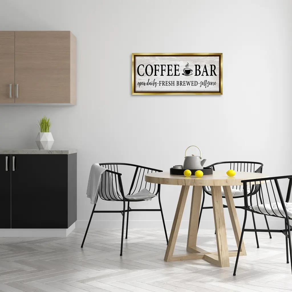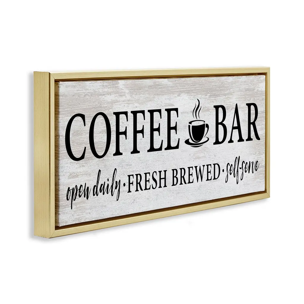 Stupell Coffee Bar Cafe Rustic Sign Framed Floater Canvas Wall Art Design By Lettered And Lined - 31 X 14 - Gold