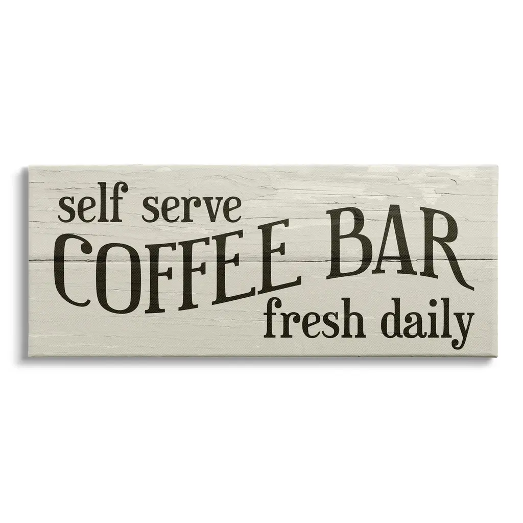 Stupell Coffee Bar Cafe Sign Rustic Pattern Kitchen Canvas Wall Art, Design By Lettered And Lined - 30 X 13