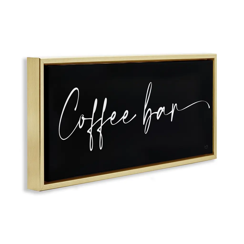 Elevate your home or office to the next level with Stupell Framed Floating Canvas Wall Art. Our premium hand-stretched canvas is mounted securely into a sturdy lightweight frame. The museum-style gap between the wrapped canvas and the box frame gives the illusion of floating artwork. Stupell Wall Art is made in the USA.Features: Dimensions: 25 x 1.7 x 11 Frame, 24 x 1.5 x 10 Canvas ArtFloating Frame Canvas Products are available in sizes 25"x11" and 31"x14". All Floating Frame Canvas Products have a 1.7" Depth.Wall Art is Ready to Hang with Hardware Free Hanging. No Installation required. For Easy Set Up Lean or Layer Artwork on Shelf or Against Wall. Artwork is Permently Fixed into the Frame.Our elevated 1.7" Thick Floating Frame is the perfect complement to our canvas style Wall Art. We use only the highest quality inks in house with industry leading printing solutions. Canvas is hand stretched over a durable wood foundation and then mounted securly into a Modern Box Frame. Made in the USA.Artwork Relates To: Coffee, Kitchen, Phrase, MinimalDesign by Lux + Me Designs