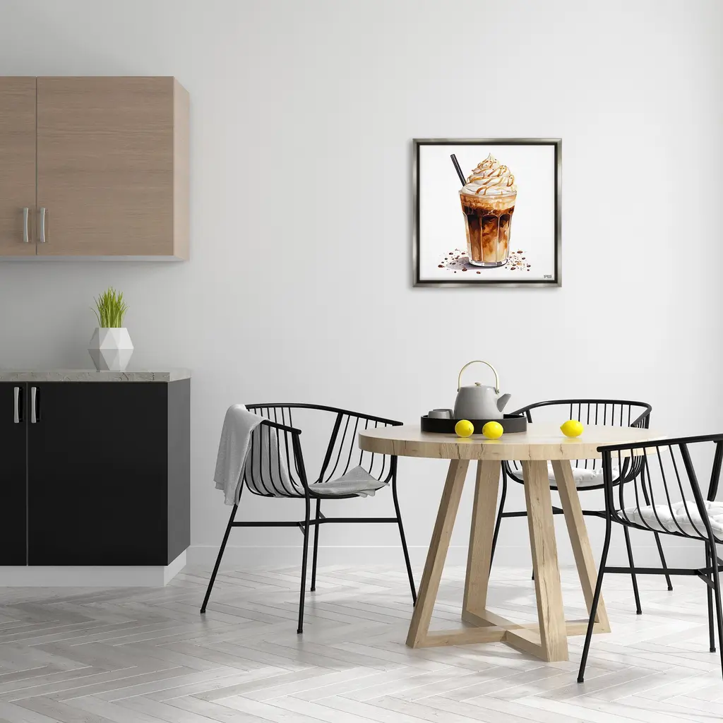 Elevate your home or office to the next level with Stupell Framed Floating Canvas Wall Art. Our premium hand-stretched canvas is mounted securely into a sturdy lightweight frame. The museum-style gap between the wrapped canvas and the box frame gives the illusion of floating artwork. Stupell Wall Art is made in the USA.Features: Dimensions: 18 x 1.7 x 18 Frame, 17 x 1.5 x 17 Canvas ArtFloating Frame Canvas Products are available in sizes 18"x18" and 25"x25". All Floating Frame Canvas Products have a 1.7" Depth.Wall Art is Ready to Hang with Hardware Free Hanging. No Installation required. For Easy Set Up Lean or Layer Artwork on Shelf or Against Wall. Artwork is Permently Fixed into the Frame.Our elevated 1.7" Thick Floating Frame is the perfect complement to our canvas style Wall Art. We use only the highest quality inks in house with industry leading printing solutions. Canvas is hand stretched over a durable wood foundation and then mounted securly into a Modern Box Frame. Made in the USA.Artwork Relates To: Cup, Coffee, Latte, Glass, Straw, Cafe, Espresso, Whipped Cream, Beverage, Brunch, KitchenDesign by RB