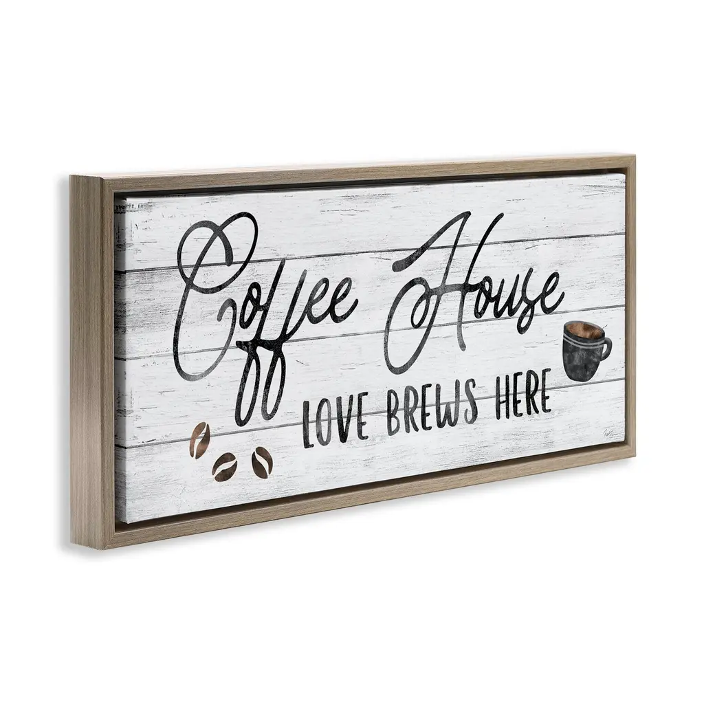 Elevate your home or office to the next level with Stupell Framed Floating Canvas Wall Art. Our premium hand-stretched canvas is mounted securely into a sturdy lightweight frame. The museum-style gap between the wrapped canvas and the box frame gives the illusion of floating artwork. Stupell Wall Art is made in the USA.Features: Dimensions: 25 x 1.7 x 11 Frame, 24 x 1.5 x 10 Canvas ArtFloating Frame Canvas Products are available in sizes 25"x11" and 31"x14". All Floating Frame Canvas Products have a 1.7" Depth.Wall Art is Ready to Hang with Hardware Free Hanging. No Installation required. For Easy Set Up Lean or Layer Artwork on Shelf or Against Wall. Artwork is Permently Fixed into the Frame.Our elevated 1.7" Thick Floating Frame is the perfect complement to our canvas style Wall Art. We use only the highest quality inks in house with industry leading printing solutions. Canvas is hand stretched over a durable wood foundation and then mounted securly into a Modern Box Frame. Made in the USA.Artwork Relates To: Kitchen, Rustic, Coffee, Café, Mug, PhraseDesign by Natalie Carpentieri