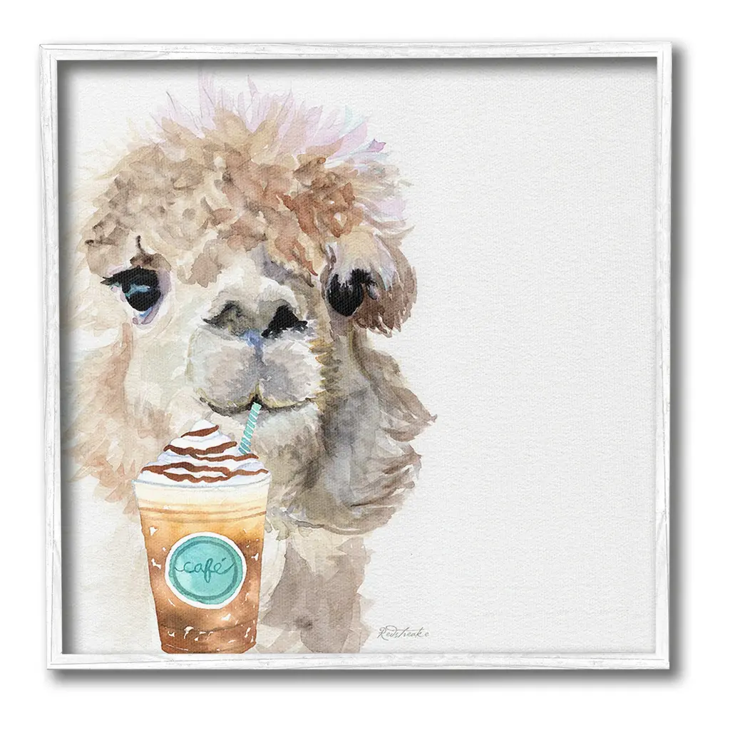 Add dimension to any room with our textured Framed Giclee Artwork. Our framed artwork is securely mounted into a 1.5-inch thick wood grain frame and ready to hang. Frames are available in three alluring styles: black, gray farmhouse and white. In addition, you should check out our oversized options if you want a statement piece. Stupell Wall Art is made in the USA.Features: Dimensions: 12 x 1.5 x 12 FramedFramed Giclee Product Sizes Include 12"x12", 17"x17", and 24"x24". Framed Giclee Products have a 1.5" Depth. Wall Art is Ready to Hang with Hardware Free Hanging. No installation required. For Easy Set Up Lean or Layer Artwork on Shelf or Against Wall.Our giclée prints are carefully mounted on a durable MDF backing, and then perfectly finished in a 1.5 inch thick woodgrain frame. Mounted frame colors include black, gray farmhouse and white. Made In USA.Artwork Relates To: Animal, Llama, , Farm, Humor, Funny, Coffee, LatteDesign by Jennifer Redstreake