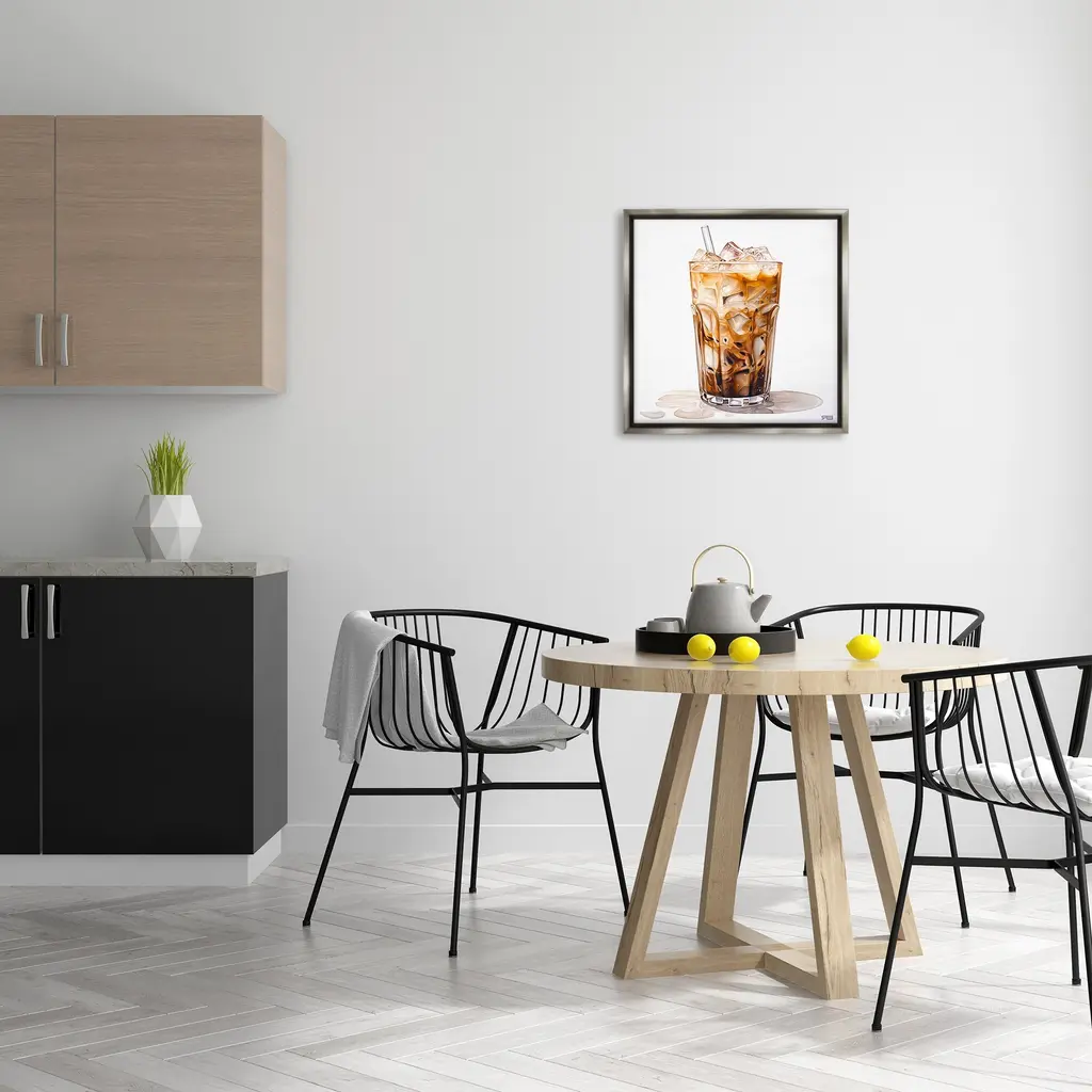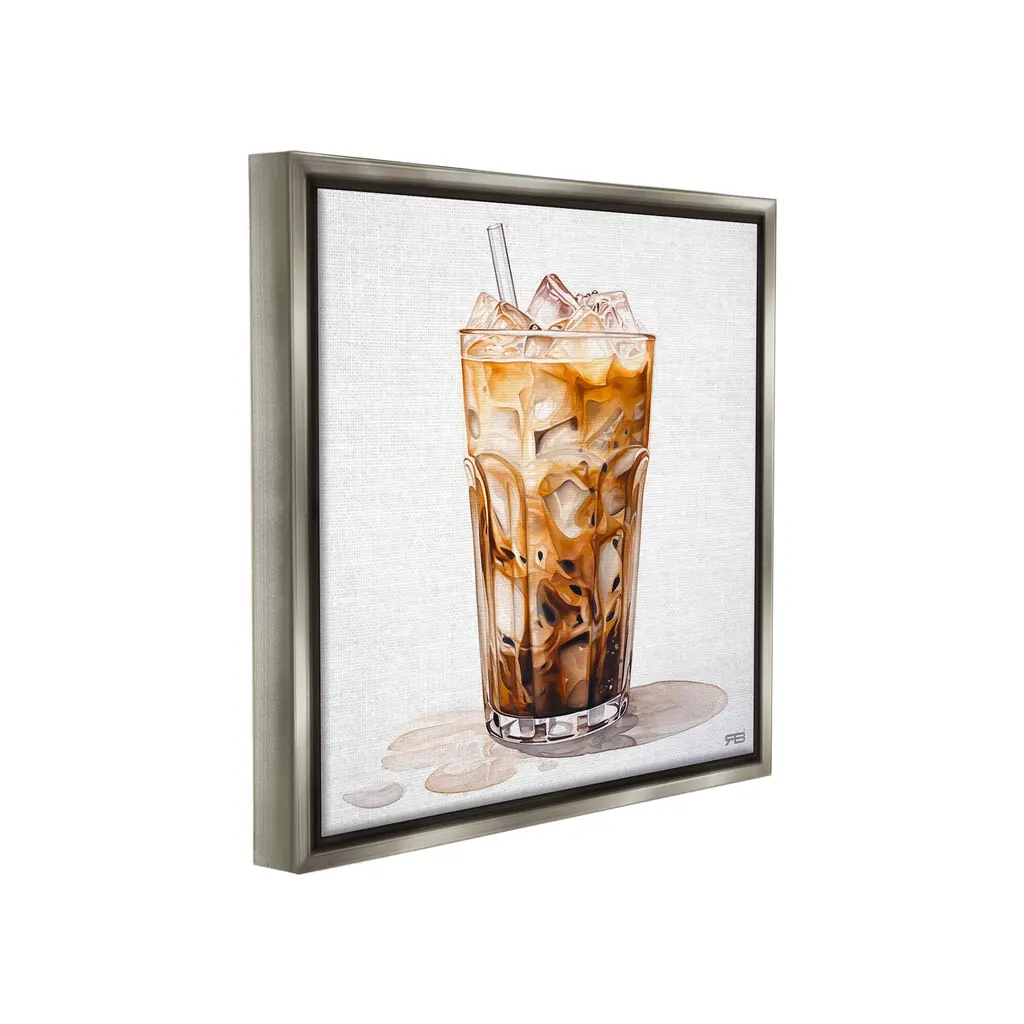 Elevate your home or office to the next level with Stupell Framed Floating Canvas Wall Art. Our premium hand-stretched canvas is mounted securely into a sturdy lightweight frame. The museum-style gap between the wrapped canvas and the box frame gives the illusion of floating artwork. Stupell Wall Art is made in the USA.Features: Dimensions: 18 x 1.7 x 18 Frame, 17 x 1.5 x 17 Canvas ArtFloating Frame Canvas Products are available in sizes 18"x18" and 25"x25". All Floating Frame Canvas Products have a 1.7" Depth.Wall Art is Ready to Hang with Hardware Free Hanging. No Installation required. For Easy Set Up Lean or Layer Artwork on Shelf or Against Wall. Artwork is Permently Fixed into the Frame.Our elevated 1.7" Thick Floating Frame is the perfect complement to our canvas style Wall Art. We use only the highest quality inks in house with industry leading printing solutions. Canvas is hand stretched over a durable wood foundation and then mounted securly into a Modern Box Frame. Made in the USA.Artwork Relates To: Cup, Coffee, Latte, Glass, Straw, Cafe, Beverage, Brunch, KitchenDesign by RB