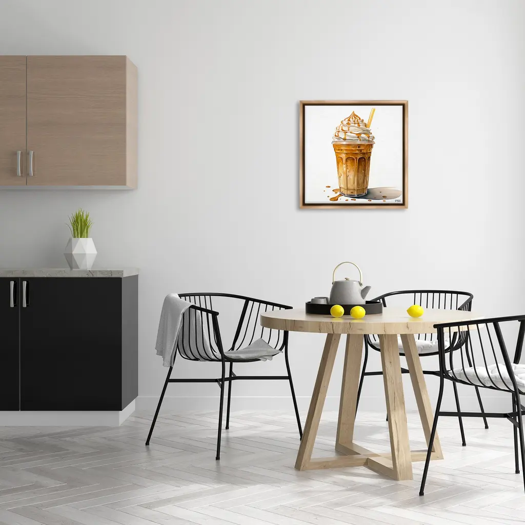 Elevate your home or office to the next level with Stupell Framed Floating Canvas Wall Art. Our premium hand-stretched canvas is mounted securely into a sturdy lightweight frame. The museum-style gap between the wrapped canvas and the box frame gives the illusion of floating artwork. Stupell Wall Art is made in the USA.Features: Dimensions: 18 x 1.7 x 18 Frame, 17 x 1.5 x 17 Canvas ArtFloating Frame Canvas Products are available in sizes 18"x18" and 25"x25". All Floating Frame Canvas Products have a 1.7" Depth.Wall Art is Ready to Hang with Hardware Free Hanging. No Installation required. For Easy Set Up Lean or Layer Artwork on Shelf or Against Wall. Artwork is Permently Fixed into the Frame.Our elevated 1.7" Thick Floating Frame is the perfect complement to our canvas style Wall Art. We use only the highest quality inks in house with industry leading printing solutions. Canvas is hand stretched over a durable wood foundation and then mounted securly into a Modern Box Frame. Made in the USA.Artwork Relates To: Cup, Coffee, Latte, Glass, Straw, Cafe, Espresso, Whipped Cream, Beverage, Brunch, KitchenDesign by RB