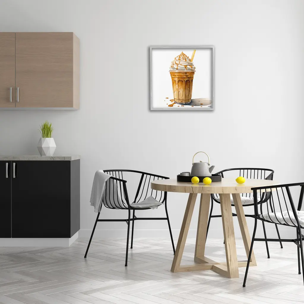 Add dimension to any room with our textured Framed Giclee Artwork. Our framed artwork is securely mounted into a 1.5-inch thick wood grain frame and ready to hang. Frames are available in three alluring styles: black, gray farmhouse and white. In addition, you should check out our oversized options if you want a statement piece. Stupell Wall Art is made in the USA.Features: Dimensions: 12 x 1.5 x 12 FramedFramed Giclee Product Sizes Include 12"x12", 17"x17", and 24"x24". Framed Giclee Products have a 1.5" Depth. Wall Art is Ready to Hang with Hardware Free Hanging. No installation required. For Easy Set Up Lean or Layer Artwork on Shelf or Against Wall.Our giclée prints are carefully mounted on a durable MDF backing, and then perfectly finished in a 1.5 inch thick woodgrain frame. Mounted frame colors include black, gray farmhouse and white. Made In USA.Artwork Relates To: Cup, Coffee, Latte, Glass, Straw, Cafe, Espresso, Whipped Cream, Beverage, Brunch, KitchenDesign by RB