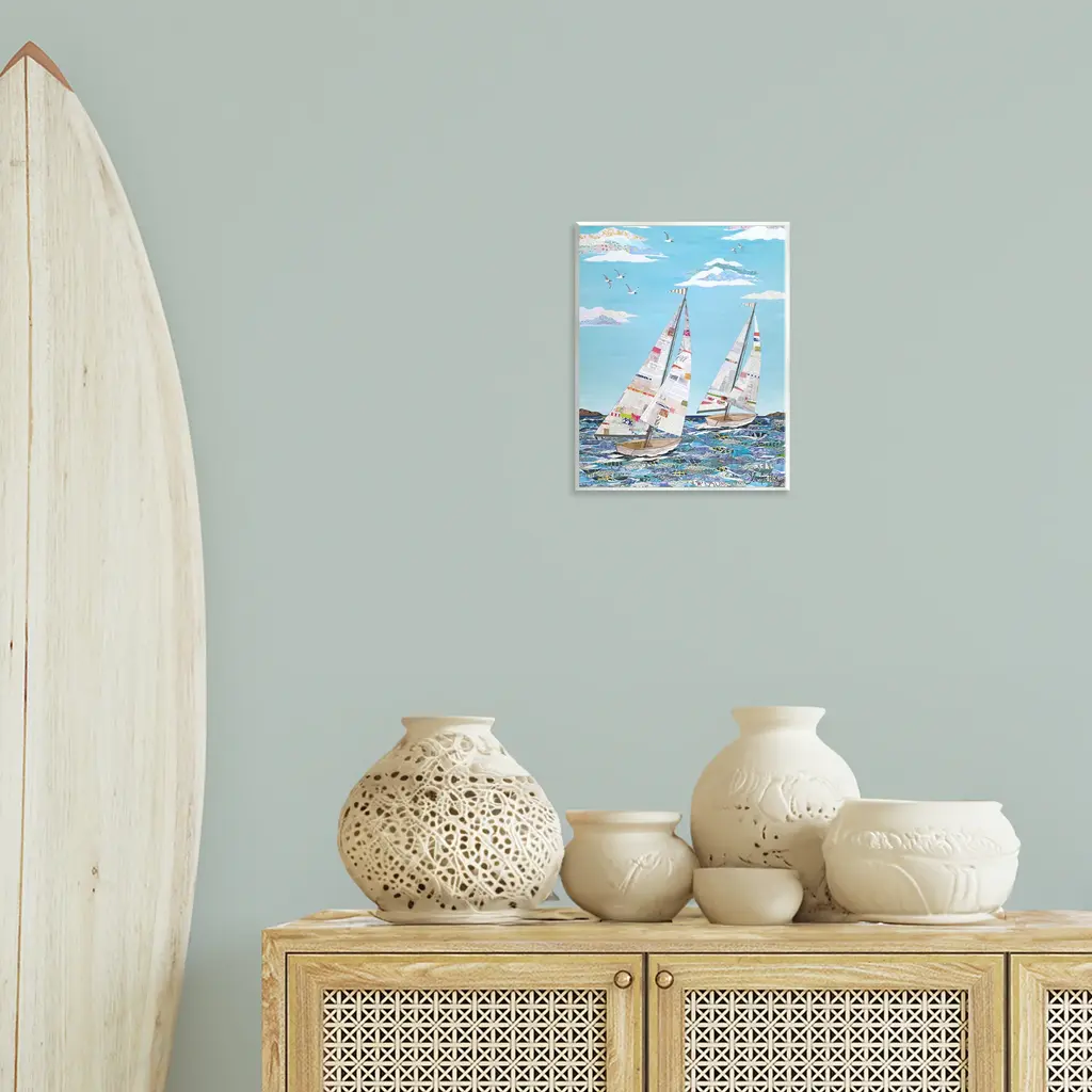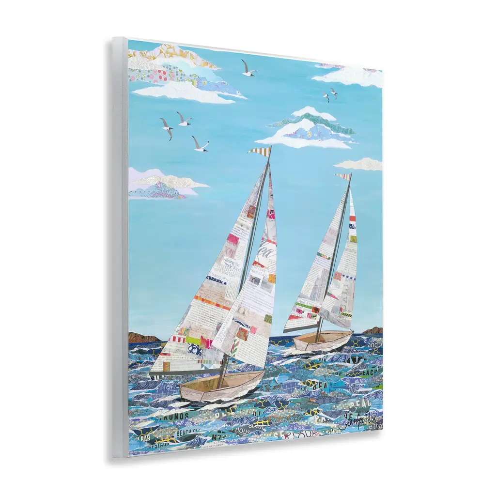Stupell Collaged Sailboat Pair Wall Plaque Art Design By Jennifer Peck - 11 X 14