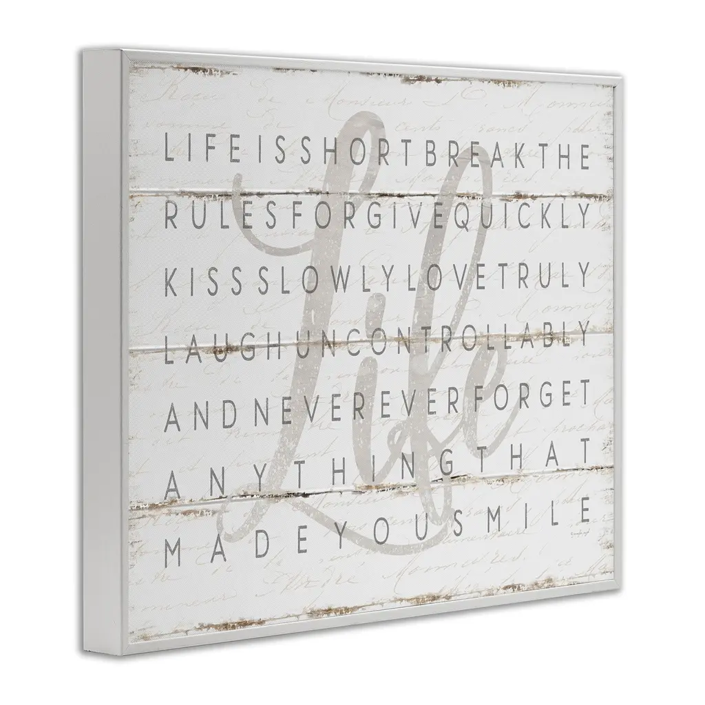 Stupell Collection Life Is Short Smile Grey On White Planked Look, Framed Giclee, 16 X 1.5 X 20, Made In Usa - Multi-Color - 24 X 30 - White