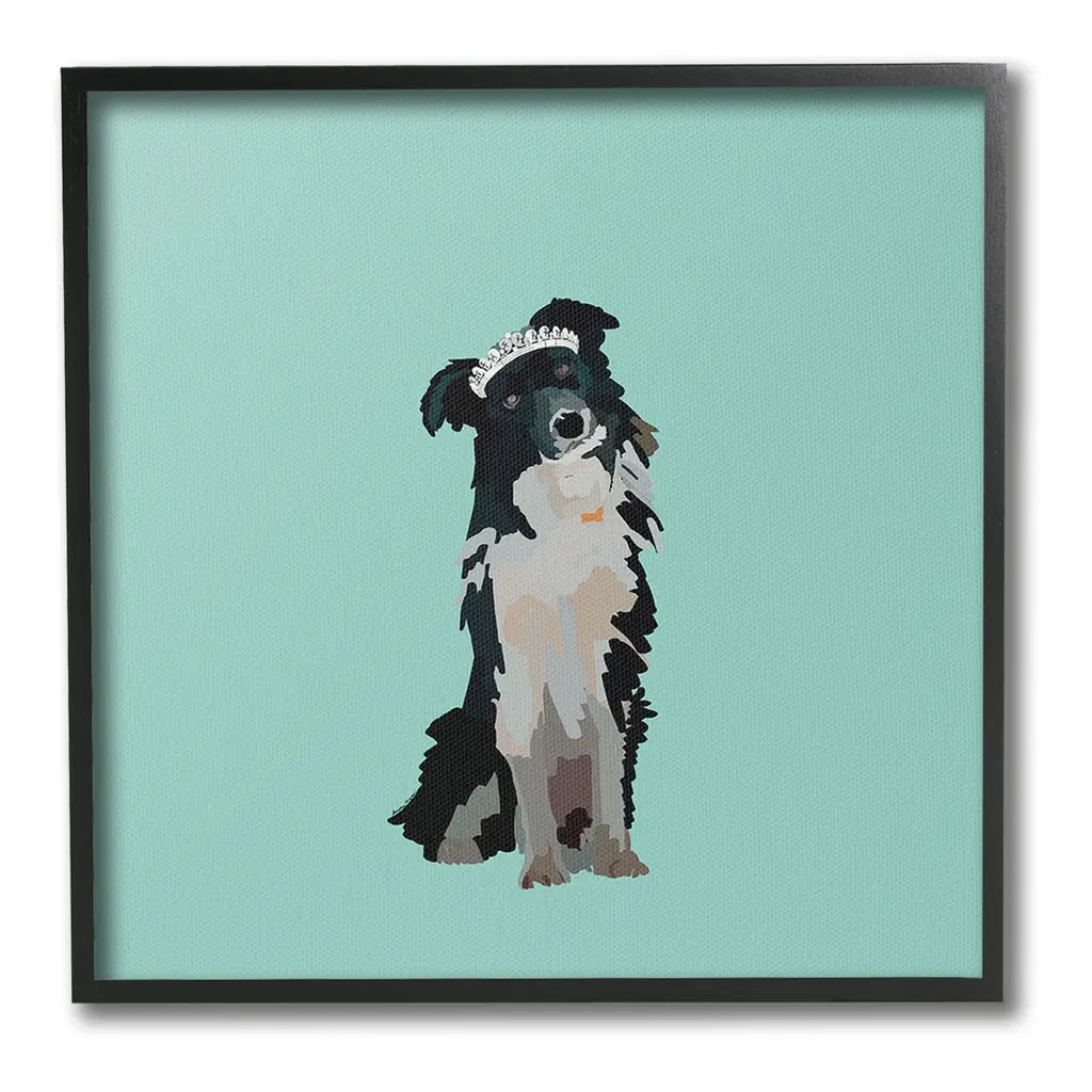 Add dimension to any room with our textured Framed Giclee Artwork. Our framed artwork is securely mounted into a 1.5-inch thick wood grain frame and ready to hang. Frames are available in three alluring styles: black, gray farmhouse and white. In addition, you should check out our oversized options if you want a statement piece. Stupell Wall Art is made in the USA.Features: Dimensions: 12 x 1.5 x 12 FramedFramed Giclee Product Sizes Include 12"x12", 17"x17", and 24"x24". Framed Giclee Products have a 1.5" Depth. Wall Art is Ready to Hang with Hardware Free Hanging. No installation required. For Easy Set Up Lean or Layer Artwork on Shelf or Against Wall.Our giclée prints are carefully mounted on a durable MDF backing, and then perfectly finished in a 1.5 inch thick woodgrain frame. Mounted frame colors include black, gray farmhouse and white. Made In USA.Artwork Relates To: Animal, Canine, Dog, Mammal, Pet, Puppy, Tiara, Crown, Princess, CollieDesign by Amelia Noyes