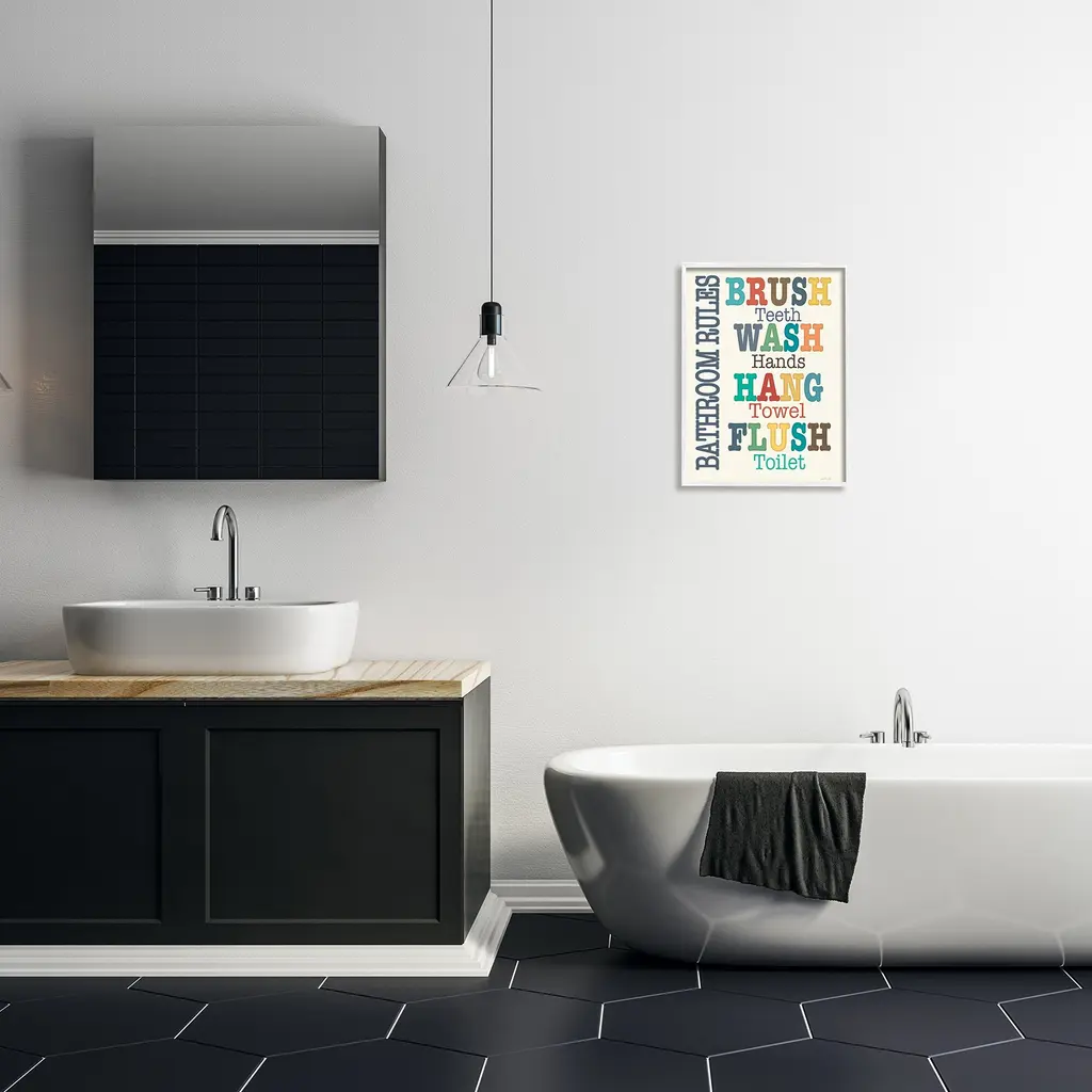 Stupell Colorful Bathroom Rules Typog Art Wall Art, Design By Jo Moulton - 16 X 20 - White