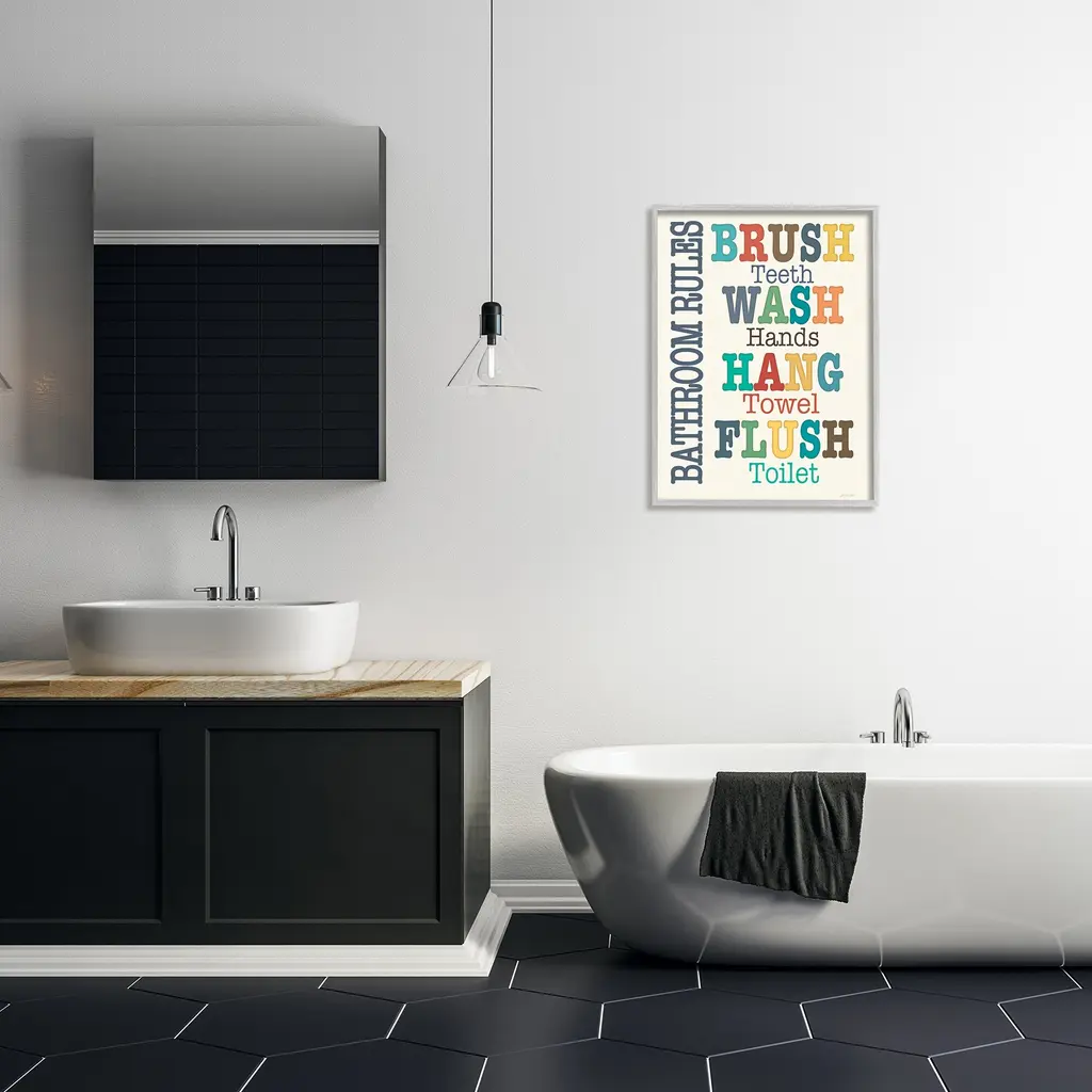 Stupell Colorful Bathroom Rules Typog Art Wall Art, Design By Jo Moulton - 24 X 30 - Grey