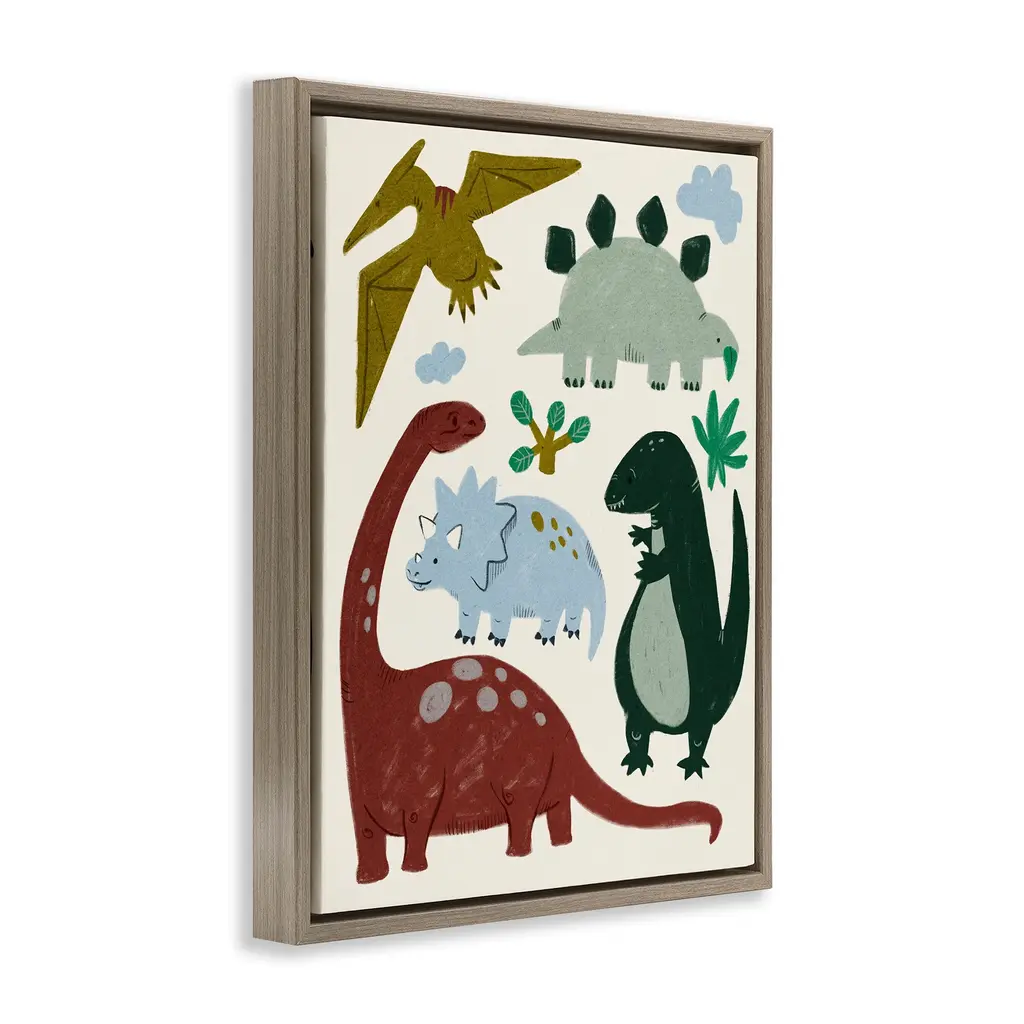 Elevate your home or office to the next level with Stupell Framed Floating Canvas Wall Art. Our premium hand-stretched canvas is mounted securely into a sturdy lightweight frame. The museum-style gap between the wrapped canvas and the box frame gives the illusion of floating artwork. Stupell Wall Art is made in the USA.Features: Dimensions: 17 x 1.7 x 21 Frame, 16 x 1.5 x 20 Canvas ArtFloating Frame Canvas Products are available in sizes 17"x21" and 25"x31". All Floating Frame Canvas Products have a 1.7" Depth.Wall Art is Ready to Hang with Hardware Free Hanging. No Installation required. For Easy Set Up Lean or Layer Artwork on Shelf or Against Wall. Artwork is Permently Fixed into the Frame.Our elevated 1.7" Thick Floating Frame is the perfect complement to our canvas style Wall Art. We use only the highest quality inks in house with industry leading printing solutions. Canvas is hand stretched over a durable wood foundation and then mounted securly into a Modern Box Frame. Made in the USA.Artwork Relates To: Kids, Dinosaur, Animal, Plant, NatureDesign by Daphne Polselli