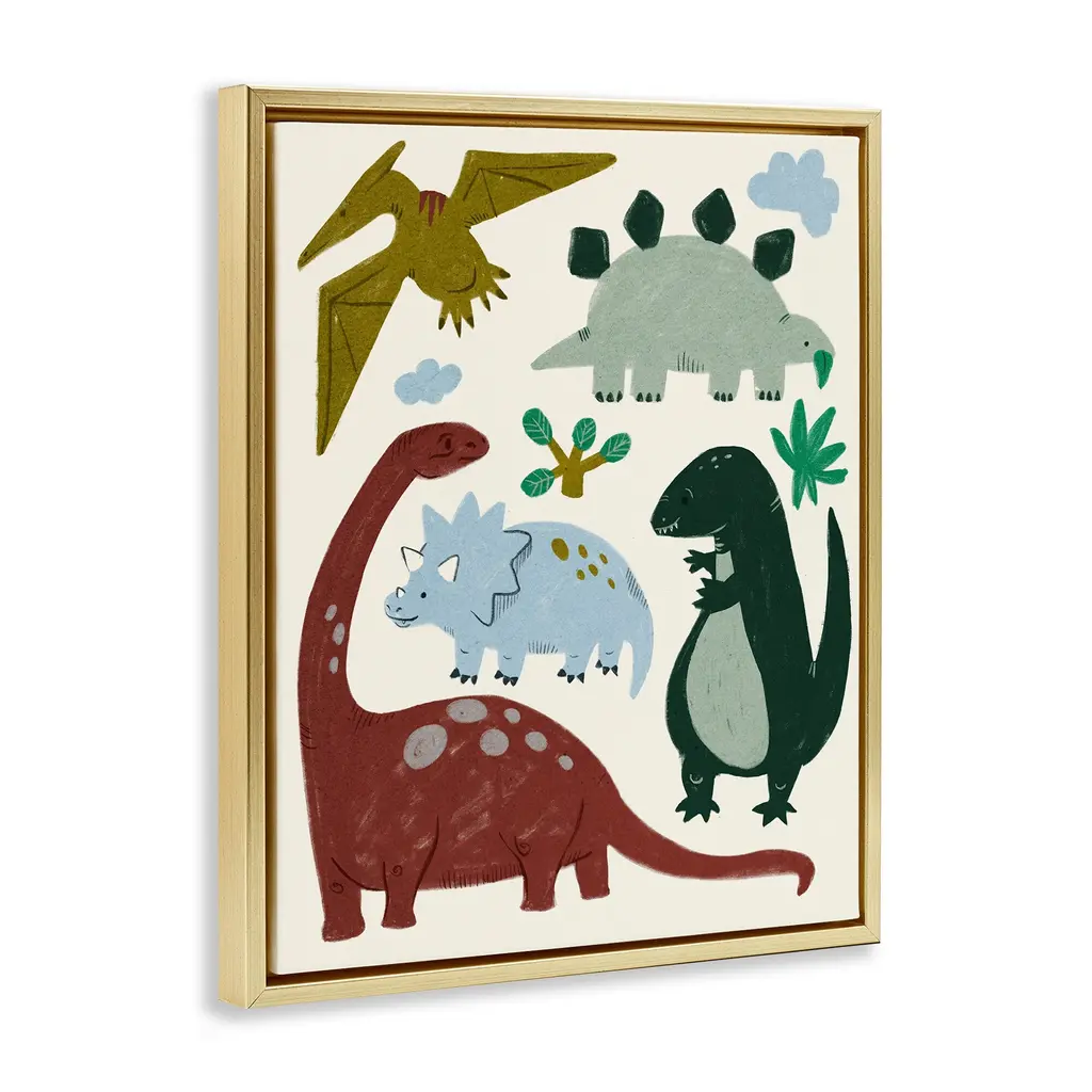 Elevate your home or office to the next level with Stupell Framed Floating Canvas Wall Art. Our premium hand-stretched canvas is mounted securely into a sturdy lightweight frame. The museum-style gap between the wrapped canvas and the box frame gives the illusion of floating artwork. Stupell Wall Art is made in the USA.Features: Dimensions: 17 x 1.7 x 21 Frame, 16 x 1.5 x 20 Canvas ArtFloating Frame Canvas Products are available in sizes 17"x21" and 25"x31". All Floating Frame Canvas Products have a 1.7" Depth.Wall Art is Ready to Hang with Hardware Free Hanging. No Installation required. For Easy Set Up Lean or Layer Artwork on Shelf or Against Wall. Artwork is Permently Fixed into the Frame.Our elevated 1.7" Thick Floating Frame is the perfect complement to our canvas style Wall Art. We use only the highest quality inks in house with industry leading printing solutions. Canvas is hand stretched over a durable wood foundation and then mounted securly into a Modern Box Frame. Made in the USA.Artwork Relates To: Kids, Dinosaur, Animal, Plant, NatureDesign by Daphne Polselli