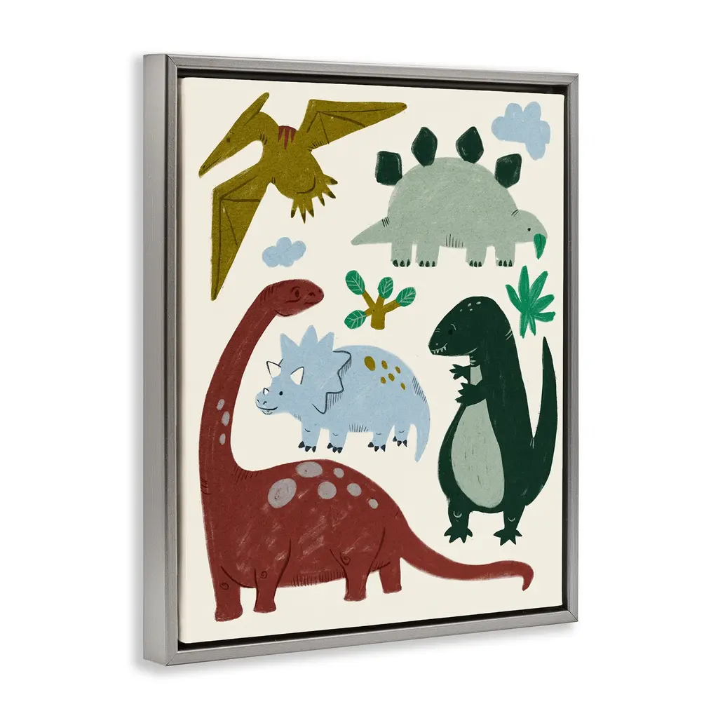 Elevate your home or office to the next level with Stupell Framed Floating Canvas Wall Art. Our premium hand-stretched canvas is mounted securely into a sturdy lightweight frame. The museum-style gap between the wrapped canvas and the box frame gives the illusion of floating artwork. Stupell Wall Art is made in the USA.Features: Dimensions: 17 x 1.7 x 21 Frame, 16 x 1.5 x 20 Canvas ArtFloating Frame Canvas Products are available in sizes 17"x21" and 25"x31". All Floating Frame Canvas Products have a 1.7" Depth.Wall Art is Ready to Hang with Hardware Free Hanging. No Installation required. For Easy Set Up Lean or Layer Artwork on Shelf or Against Wall. Artwork is Permently Fixed into the Frame.Our elevated 1.7" Thick Floating Frame is the perfect complement to our canvas style Wall Art. We use only the highest quality inks in house with industry leading printing solutions. Canvas is hand stretched over a durable wood foundation and then mounted securly into a Modern Box Frame. Made in the USA.Artwork Relates To: Kids, Dinosaur, Animal, Plant, NatureDesign by Daphne Polselli