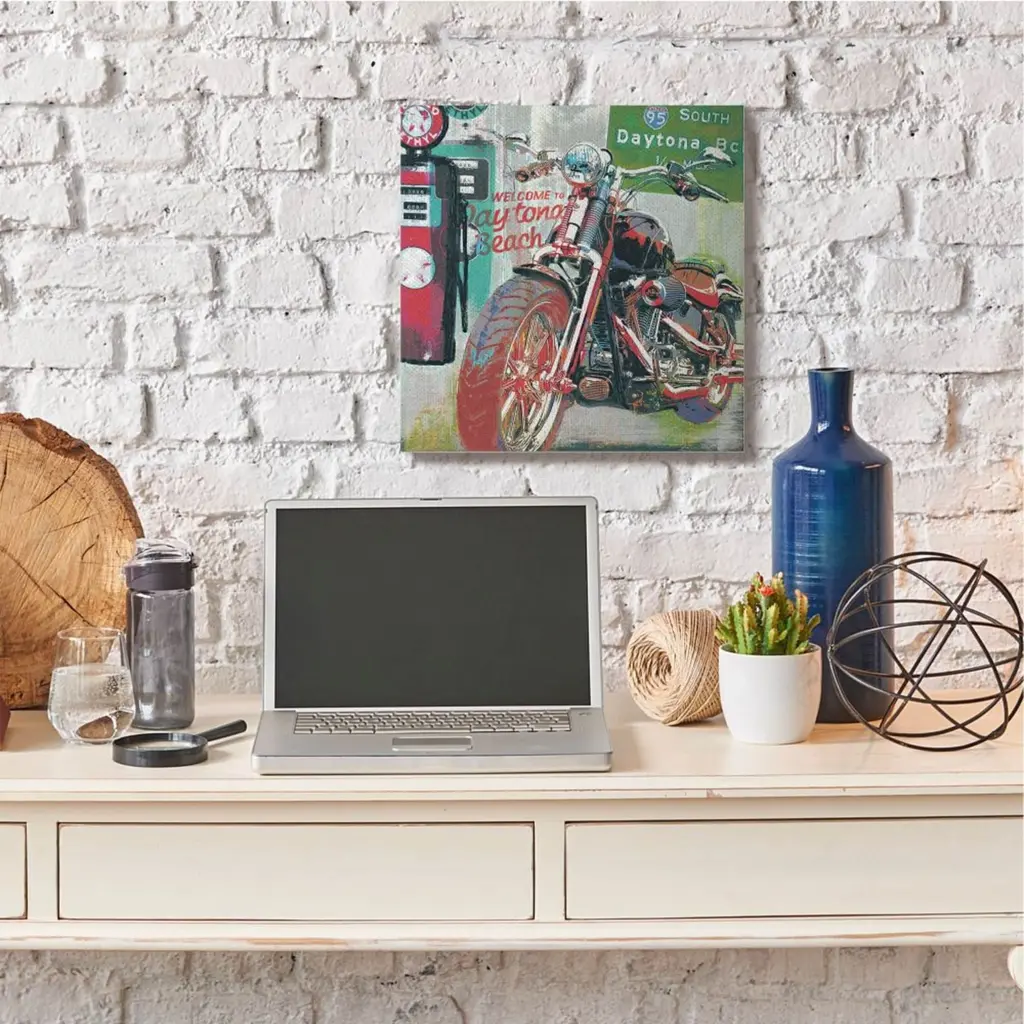 Stupell Colorful Motorcycle Gas Station Pop Art Collage Canvas Wall Art - 24 X 24