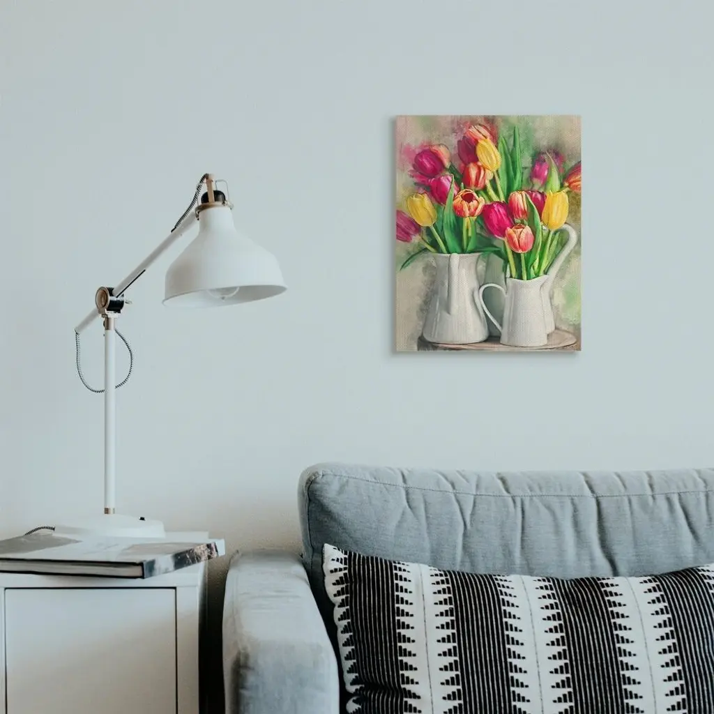 Stupell Colorful Tulip Assortments In Farm Pitchers Canvas Wall Art - Multi-Color - 16 X 20