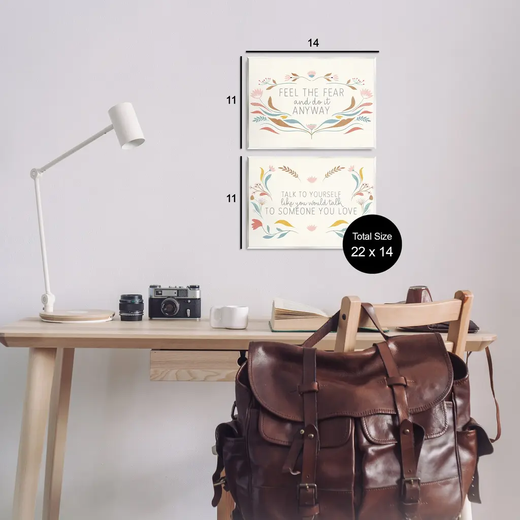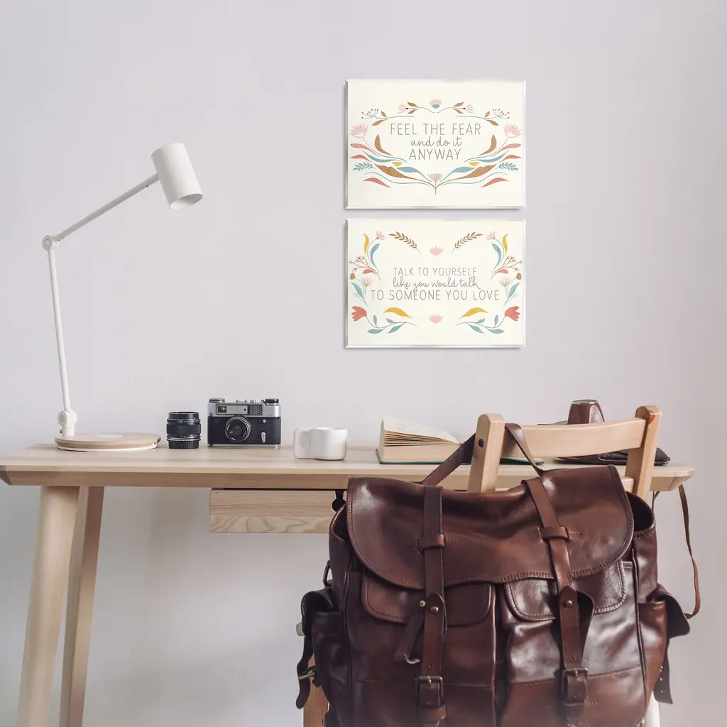 Fill any space with Stupell Wall Art Sets. Our wall plaques start as high-quality lithograph prints mounted on durable 0.5-inch thick MDF wood. Each piece is hand finished and comes with a fresh layer of white foil on the sides to give it a crisp, clean look. Plaques arrive ready to hang without installation and come with removable plastic corners to keep them from damage in transit. Stupell Wall Art is made in the USA.Features: Dimensions: 2 Piece Set, Each Panel is 14 x 0.5 x 11 InchesWall Art is Ready to Hang with Hardware Free Hanging. No installation required. For Easy Set Up Lean or Layer Artwork on Shelf or Against Wall.All of our wall plaques start off as high quality lithograph prints that are then mounted on durable 0.5 inch thick MDF wood. Each piece is hand finished and comes with a fresh layer of foil on the sides to give it a crisp clean look. Made In USA.Artwork Relates To: Inspirational, Phrase, Motivational, Uplifting. FloralDesign by Kim Allen