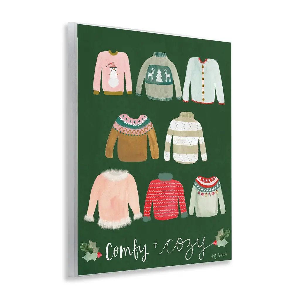 Our wall plaques start as high-quality lithograph prints mounted on durable 0.5-inch thick MDF wood. Each piece is hand finished and comes with a fresh layer of white foil on the sides to give it a crisp, clean look. Plaques arrive ready to hang without installation and come with removable plastic corners to keep them from damage in transit. Stupell Wall Art is made in the USA.Features: Dimensions: 11 x 0.5 x 14 InchesWall Art is Ready to Hang with Hardware Free Hanging. No installation required. For Easy Set Up Lean or Layer Artwork on Shelf or Against Wall.All of our wall plaques start off as high quality lithograph prints that are then mounted on durable 0.5 inch thick MDF wood. Each piece is hand finished and comes with a fresh layer of foil on the sides to give it a crisp clean look. Made In USA.Artwork Relates To: Sweater, Jumper, Cozy, Comfy, Winter, Seasonal, PhraseDesign by Katie Doucette