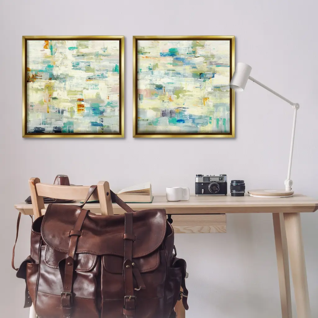 Elevate your home or office to the next level with Stupell Framed Floating Canvas Wall Art. Our premium hand-stretched canvas is mounted securely into a sturdy lightweight frame. The museum-style gap between the wrapped canvas and the box frame gives the illusion of floating artwork. Stupell Wall Art is made in the USA.Features: Dimensions: 2 Piece Set, Each Frame is 18 x 1.7 x 18Two Piece Floating Frame Canvas Products are available as 18"x18" or 25"x25" Panels. All Floating Frame Canvas Products have a 1.7" Depth.Wall Art is Ready to Hang with Hardware Free Hanging. No Installation required. For Easy Set Up Lean or Layer Artwork on Shelf or Against Wall. Artwork is Permently Fixed into the Frame.Our elevated 1.7" Thick Floating Frame is the perfect complement to our canvas style Wall Art. We use only the highest quality inks in house with industry leading printing solutions. Canvas is hand stretched over a durable wood foundation and then mounted securly into a Modern Box Frame. Made in the USA.Artwork Relates To: Abstract, Modern, Pattern, ContemporaryDesign by Lisa Ridgers