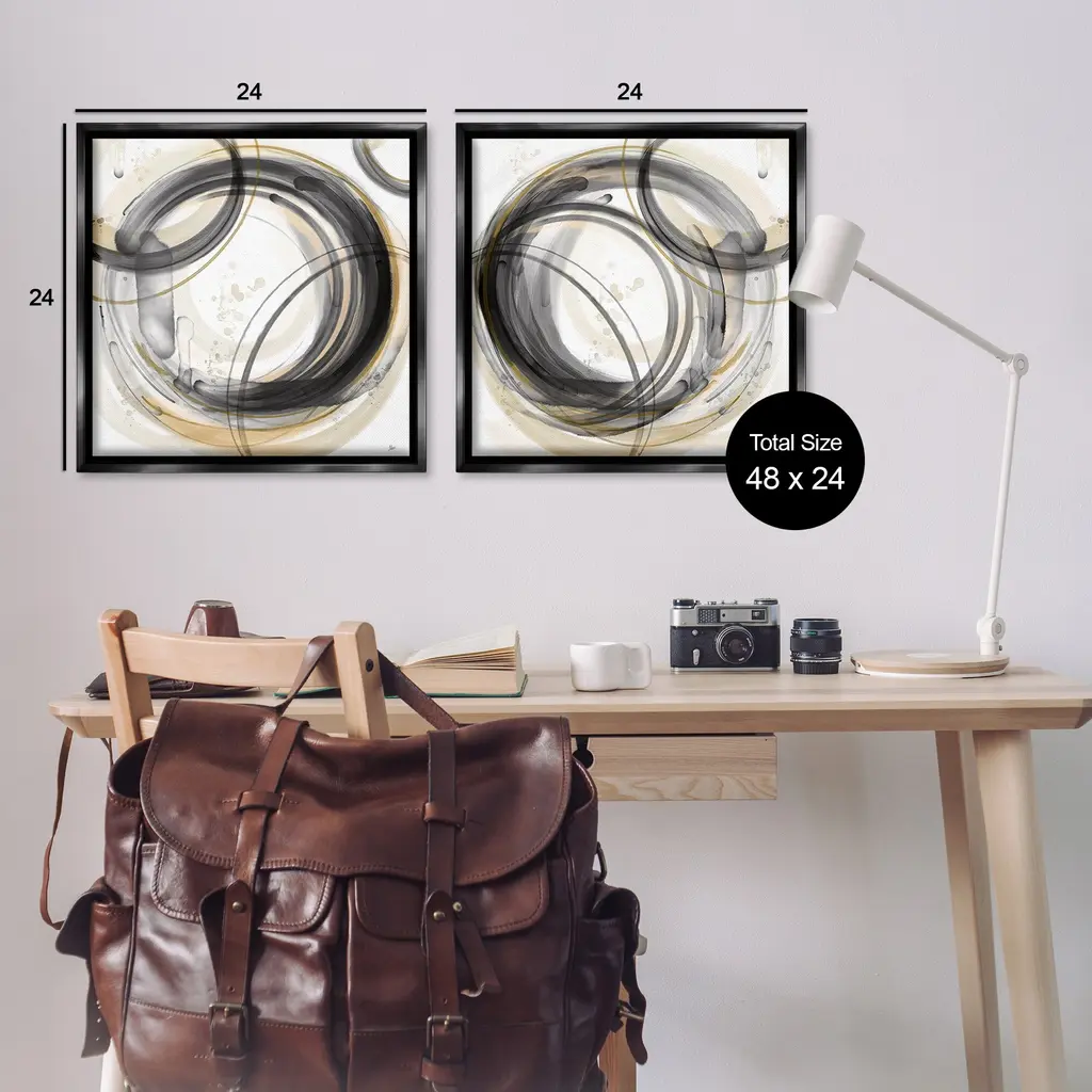 Elevate your home or office to the next level with Stupell Framed Floating Canvas Wall Art. Our premium hand-stretched canvas is mounted securely into a sturdy lightweight frame. The museum-style gap between the wrapped canvas and the box frame gives the illusion of floating artwork. Stupell Wall Art is made in the USA.Features: Dimensions: 2 Piece Set, Each Frame is 18 x 1.7 x 18Two Piece Floating Frame Canvas Products are available as 18"x18" or 25"x25" Panels. All Floating Frame Canvas Products have a 1.7" Depth.Wall Art is Ready to Hang with Hardware Free Hanging. No Installation required. For Easy Set Up Lean or Layer Artwork on Shelf or Against Wall. Artwork is Permently Fixed into the Frame.Our elevated 1.7" Thick Floating Frame is the perfect complement to our canvas style Wall Art. We use only the highest quality inks in house with industry leading printing solutions. Canvas is hand stretched over a durable wood foundation and then mounted securly into a Modern Box Frame. Made in the USA.Artwork Relates To: Abstract, Modern, Geometric, Circle, PatternDesign by Nan