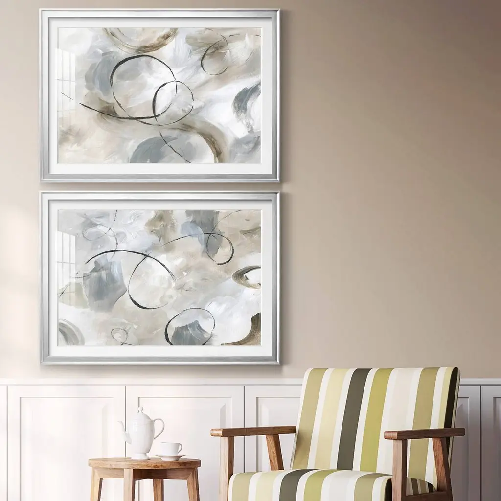 Elevate your home or office to the next level with Stupell Framed Floating Canvas Wall Art. Our premium hand-stretched canvas is mounted securely into a sturdy lightweight frame. The museum-style gap between the wrapped canvas and the box frame gives the illusion of floating artwork. Stupell Wall Art is made in the USA.Features: Dimensions: 2 Piece Set, Each Frame is 18 x 1.7 x 18Two Piece Floating Frame Canvas Products are available as 18"x18" or 25"x25" Panels. All Floating Frame Canvas Products have a 1.7" Depth.Wall Art is Ready to Hang with Hardware Free Hanging. No Installation required. For Easy Set Up Lean or Layer Artwork on Shelf or Against Wall. Artwork is Permently Fixed into the Frame.Our elevated 1.7" Thick Floating Frame is the perfect complement to our canvas style Wall Art. We use only the highest quality inks in house with industry leading printing solutions. Canvas is hand stretched over a durable wood foundation and then mounted securly into a Modern Box Frame. Made in the USA.Artwork Relates To: Abstract, Modern, Geometric, Circle, PatternDesign by Nan