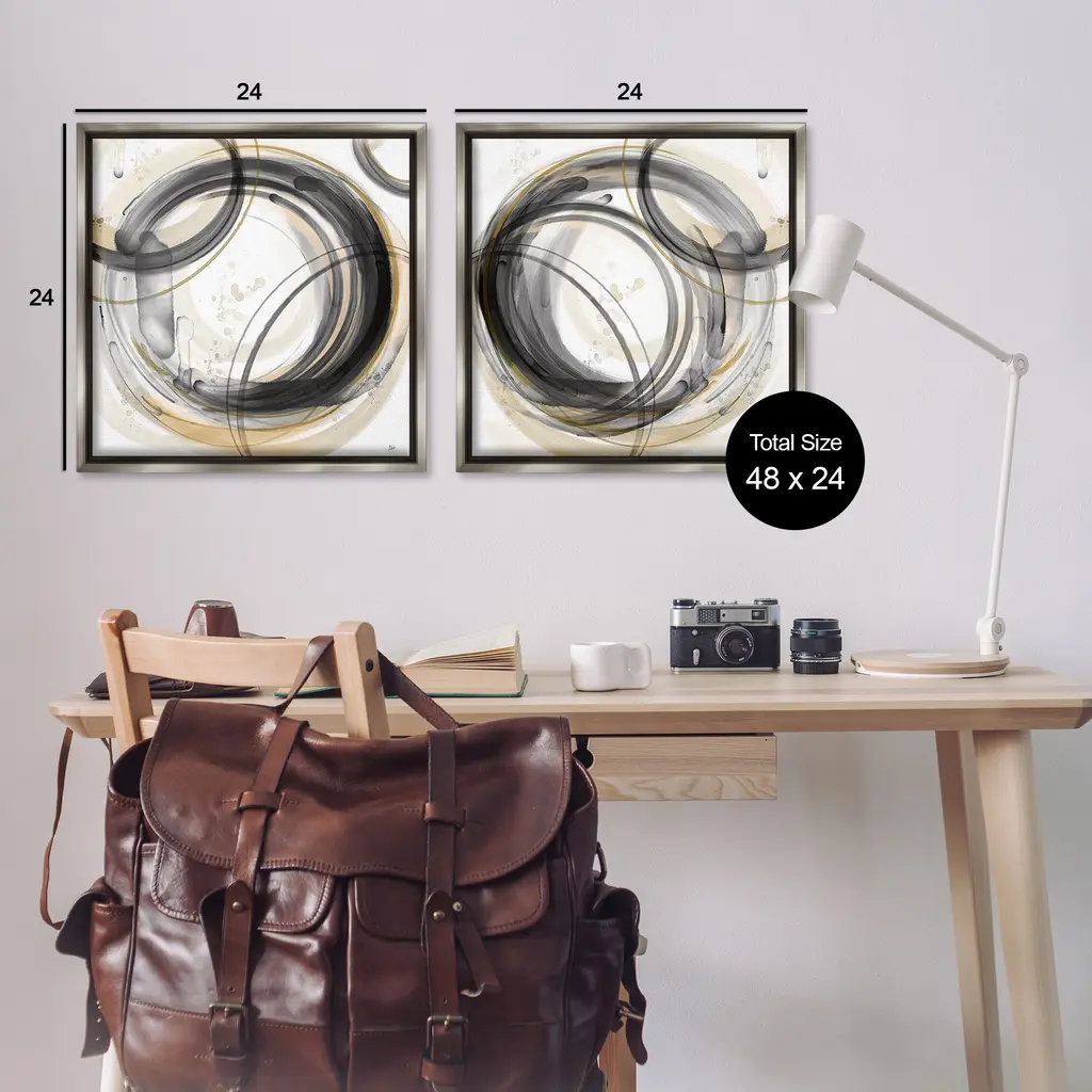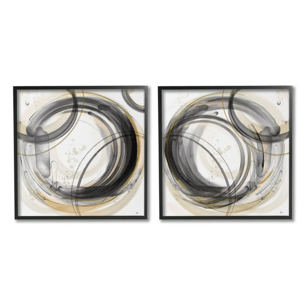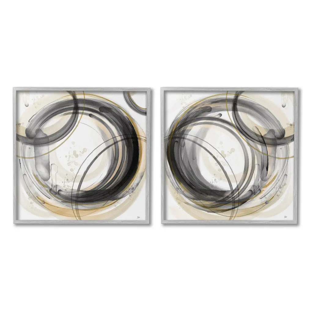 Elevate your home or office to the next level with Stupell Framed Floating Canvas Wall Art. Our premium hand-stretched canvas is mounted securely into a sturdy lightweight frame. The museum-style gap between the wrapped canvas and the box frame gives the illusion of floating artwork. Stupell Wall Art is made in the USA.Features: Dimensions: 2 Piece Set, Each Frame is 18 x 1.7 x 18Two Piece Floating Frame Canvas Products are available as 18"x18" or 25"x25" Panels. All Floating Frame Canvas Products have a 1.7" Depth.Wall Art is Ready to Hang with Hardware Free Hanging. No Installation required. For Easy Set Up Lean or Layer Artwork on Shelf or Against Wall. Artwork is Permently Fixed into the Frame.Our elevated 1.7" Thick Floating Frame is the perfect complement to our canvas style Wall Art. We use only the highest quality inks in house with industry leading printing solutions. Canvas is hand stretched over a durable wood foundation and then mounted securly into a Modern Box Frame. Made in the USA.Artwork Relates To: Abstract, Modern, Geometric, Circle, PatternDesign by Nan