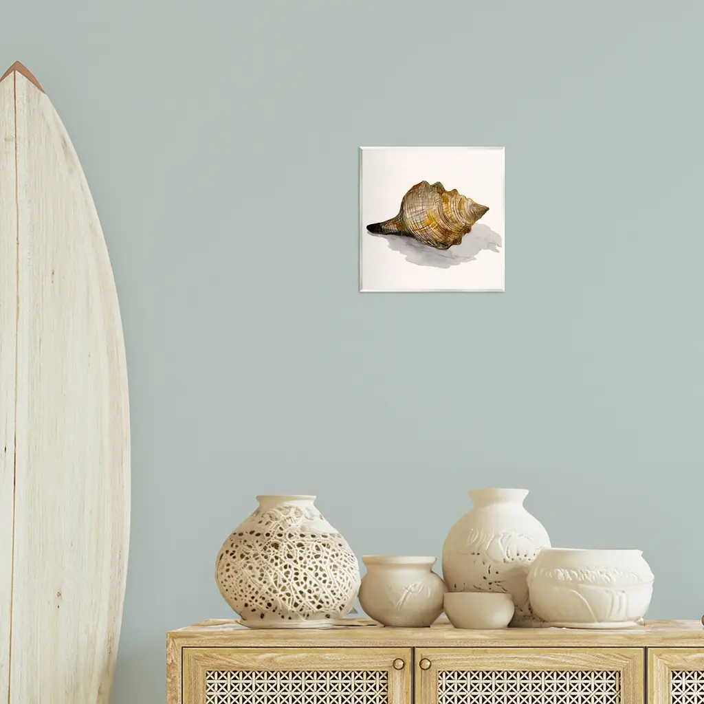 Stupell Conch Shell On Beige Wall Plaque Art Design By Jacob Q - 12 X 12