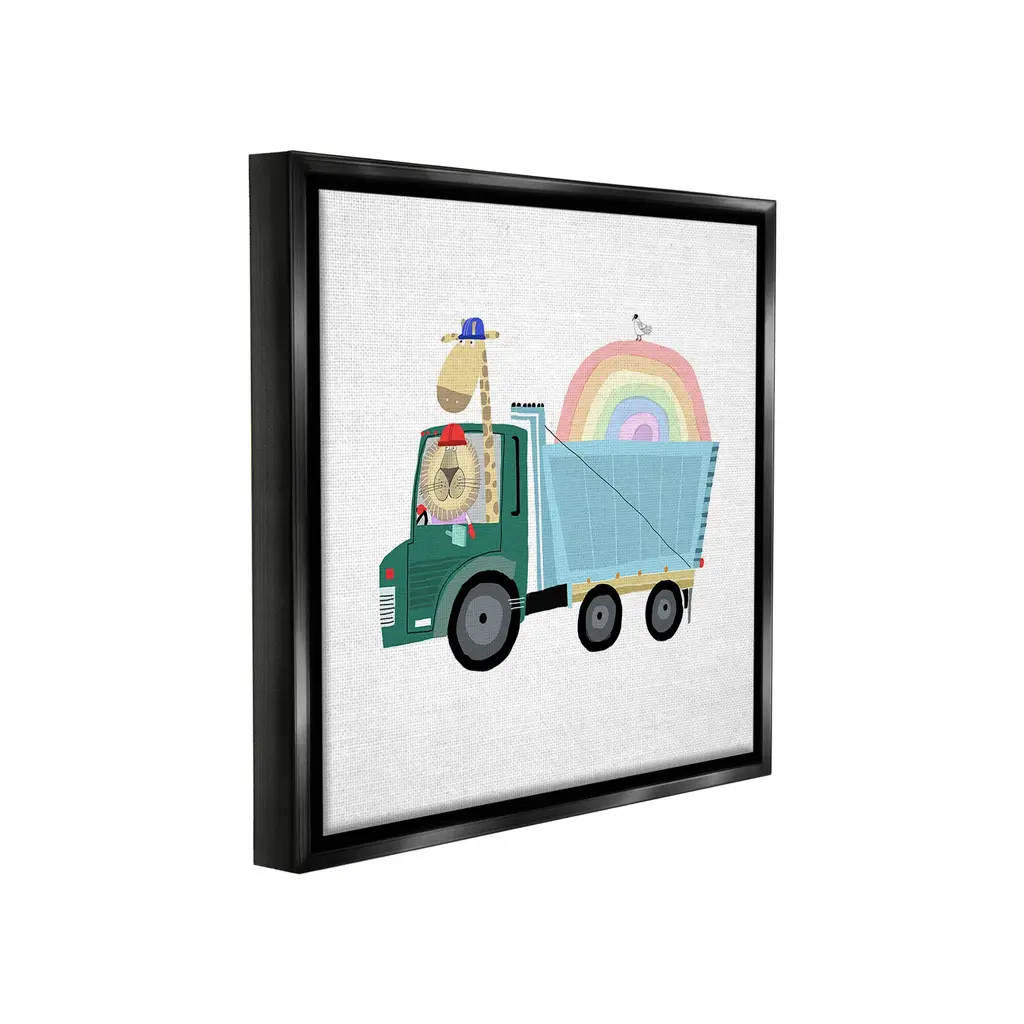 Elevate your home or office to the next level with Stupell Framed Floating Canvas Wall Art. Our premium hand-stretched canvas is mounted securely into a sturdy lightweight frame. The museum-style gap between the wrapped canvas and the box frame gives the illusion of floating artwork. Stupell Wall Art is made in the USA.Features: Dimensions: 18 x 1.7 x 18 Frame, 17 x 1.5 x 17 Canvas ArtFloating Frame Canvas Products are available in sizes 18"x18" and 25"x25". All Floating Frame Canvas Products have a 1.7" Depth.Wall Art is Ready to Hang with Hardware Free Hanging. No Installation required. For Easy Set Up Lean or Layer Artwork on Shelf or Against Wall. Artwork is Permently Fixed into the Frame.Our elevated 1.7" Thick Floating Frame is the perfect complement to our canvas style Wall Art. We use only the highest quality inks in house with industry leading printing solutions. Canvas is hand stretched over a durable wood foundation and then mounted securly into a Modern Box Frame. Made in the USA.Artwork Relates To: Animal, Bird, Bulldozer, Vehicle, Truck, Lion, Giraffe, Rainbow, ConstructionDesign by Carla Daly