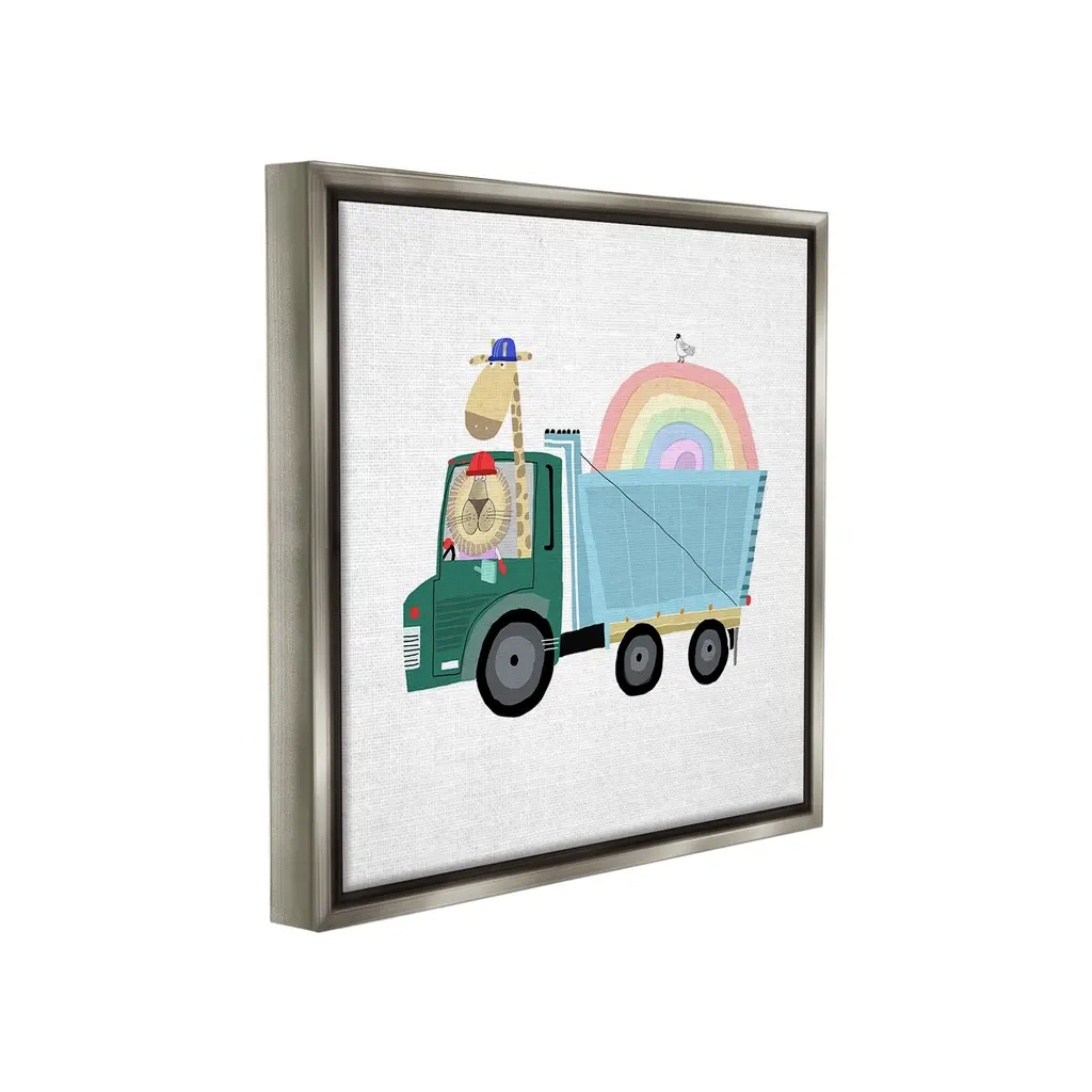 Elevate your home or office to the next level with Stupell Framed Floating Canvas Wall Art. Our premium hand-stretched canvas is mounted securely into a sturdy lightweight frame. The museum-style gap between the wrapped canvas and the box frame gives the illusion of floating artwork. Stupell Wall Art is made in the USA.Features: Dimensions: 18 x 1.7 x 18 Frame, 17 x 1.5 x 17 Canvas ArtFloating Frame Canvas Products are available in sizes 18"x18" and 25"x25". All Floating Frame Canvas Products have a 1.7" Depth.Wall Art is Ready to Hang with Hardware Free Hanging. No Installation required. For Easy Set Up Lean or Layer Artwork on Shelf or Against Wall. Artwork is Permently Fixed into the Frame.Our elevated 1.7" Thick Floating Frame is the perfect complement to our canvas style Wall Art. We use only the highest quality inks in house with industry leading printing solutions. Canvas is hand stretched over a durable wood foundation and then mounted securly into a Modern Box Frame. Made in the USA.Artwork Relates To: Animal, Bird, Bulldozer, Vehicle, Truck, Lion, Giraffe, Rainbow, ConstructionDesign by Carla Daly