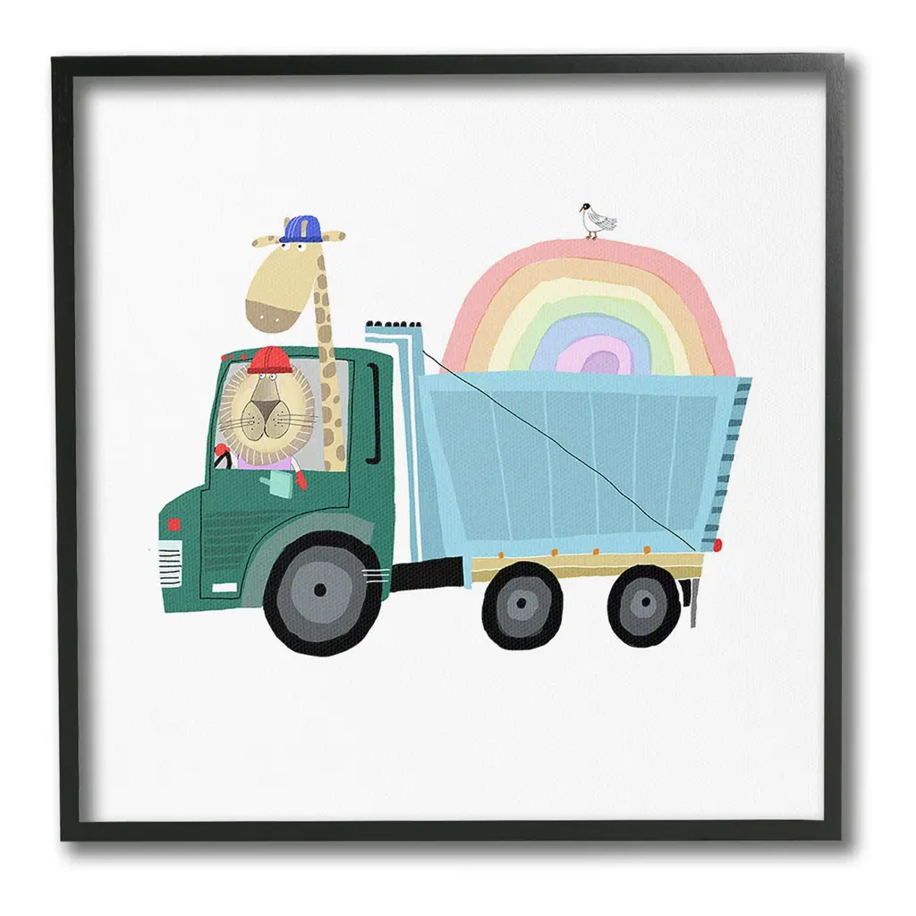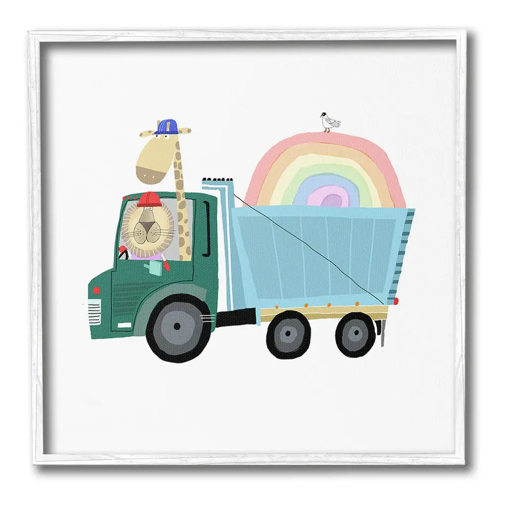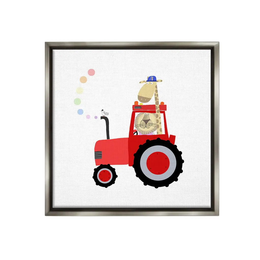 Elevate your home or office to the next level with Stupell Framed Floating Canvas Wall Art. Our premium hand-stretched canvas is mounted securely into a sturdy lightweight frame. The museum-style gap between the wrapped canvas and the box frame gives the illusion of floating artwork. Stupell Wall Art is made in the USA.Features: Dimensions: 18 x 1.7 x 18 Frame, 17 x 1.5 x 17 Canvas ArtFloating Frame Canvas Products are available in sizes 18"x18" and 25"x25". All Floating Frame Canvas Products have a 1.7" Depth.Wall Art is Ready to Hang with Hardware Free Hanging. No Installation required. For Easy Set Up Lean or Layer Artwork on Shelf or Against Wall. Artwork is Permently Fixed into the Frame.Our elevated 1.7" Thick Floating Frame is the perfect complement to our canvas style Wall Art. We use only the highest quality inks in house with industry leading printing solutions. Canvas is hand stretched over a durable wood foundation and then mounted securly into a Modern Box Frame. Made in the USA.Artwork Relates To: Animal, Bird, Bulldozer, Vehicle, Truck, Lion, Giraffe, Rainbow, ConstructionDesign by Carla Daly