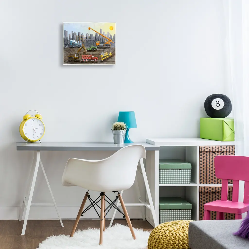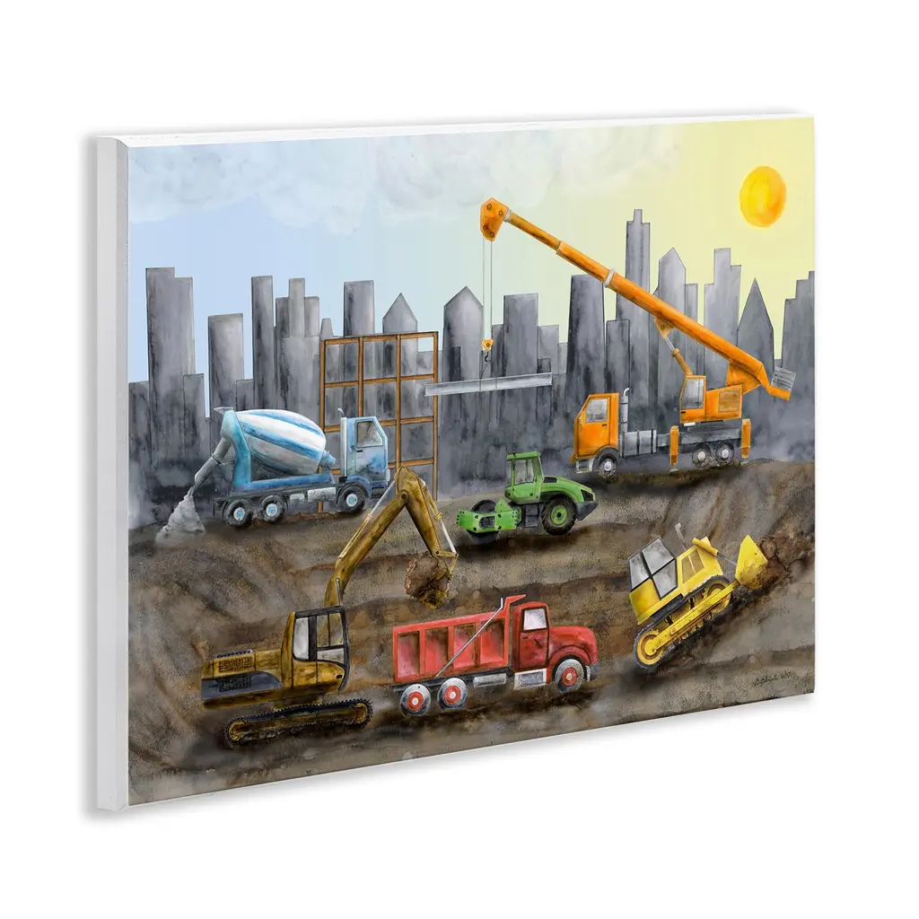 Our wall plaques start as high-quality lithograph prints mounted on durable 0.5-inch thick MDF wood. Each piece is hand finished and comes with a fresh layer of white foil on the sides to give it a crisp, clean look. Plaques arrive ready to hang without installation and come with removable plastic corners to keep them from damage in transit. Stupell Wall Art is made in the USA.Features: Dimensions: 14 x 0.5 x 11 InchesWall Art is Ready to Hang with Hardware Free Hanging. No installation required. For Easy Set Up Lean or Layer Artwork on Shelf or Against Wall.All of our wall plaques start off as high quality lithograph prints that are then mounted on durable 0.5 inch thick MDF wood. Each piece is hand finished and comes with a fresh layer of foil on the sides to give it a crisp clean look. Made In USA.Artwork Relates To: Construction, Vehicle, Transportation, City, SkylineDesign by Brett Blumenthal