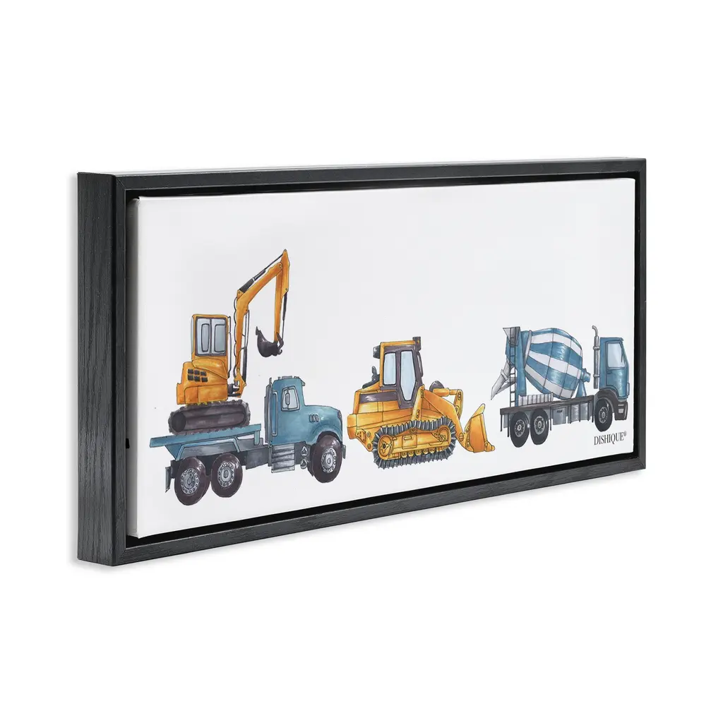 Elevate your home or office to the next level with Stupell Framed Floating Canvas Wall Art. Our premium hand-stretched canvas is mounted securely into a sturdy lightweight frame. The museum-style gap between the wrapped canvas and the box frame gives the illusion of floating artwork. Stupell Wall Art is made in the USA.Features: Dimensions: 25 x 1.7 x 11 Frame, 24 x 1.5 x 10 Canvas ArtFloating Frame Canvas Products are available in sizes 25"x11" and 31"x14". All Floating Frame Canvas Products have a 1.7" Depth.Wall Art is Ready to Hang with Hardware Free Hanging. No Installation required. For Easy Set Up Lean or Layer Artwork on Shelf or Against Wall. Artwork is Permently Fixed into the Frame.Our elevated 1.7" Thick Floating Frame is the perfect complement to our canvas style Wall Art. We use only the highest quality inks in house with industry leading printing solutions. Canvas is hand stretched over a durable wood foundation and then mounted securly into a Modern Box Frame. Made in the USA.Artwork Relates To: Vehicle, Transportation, Tractor, Bulldozer, Construction, TrucksDesign by Dishique