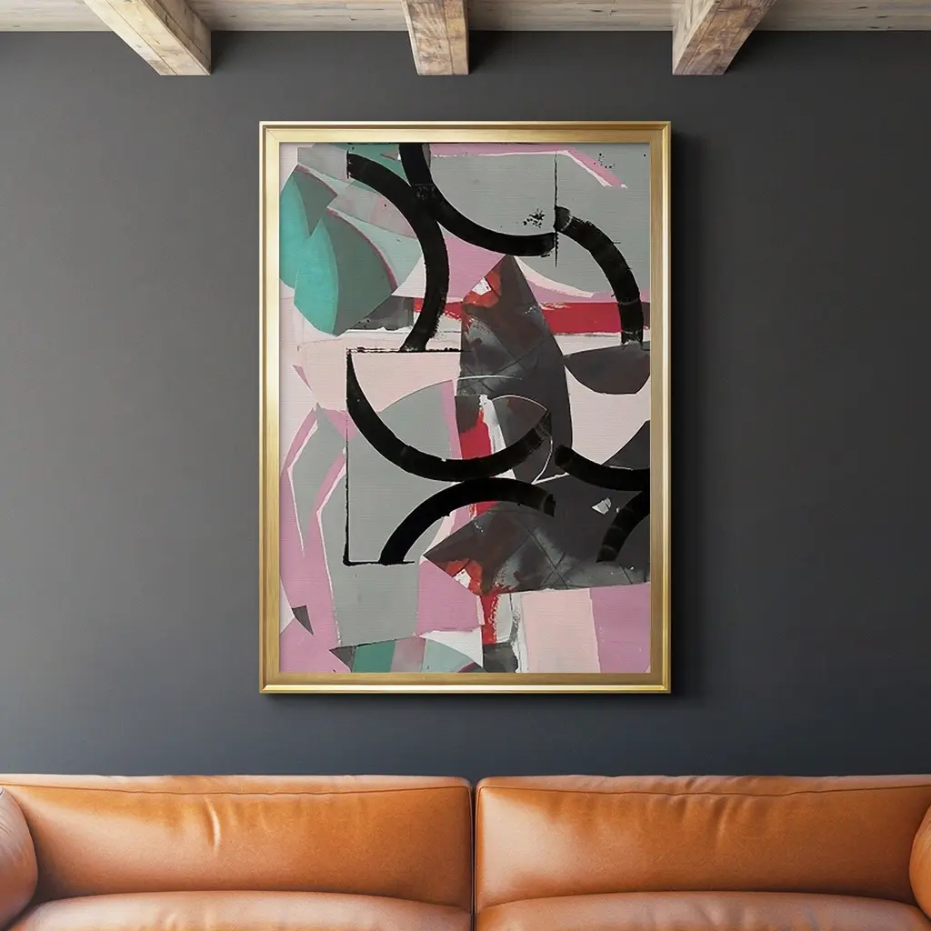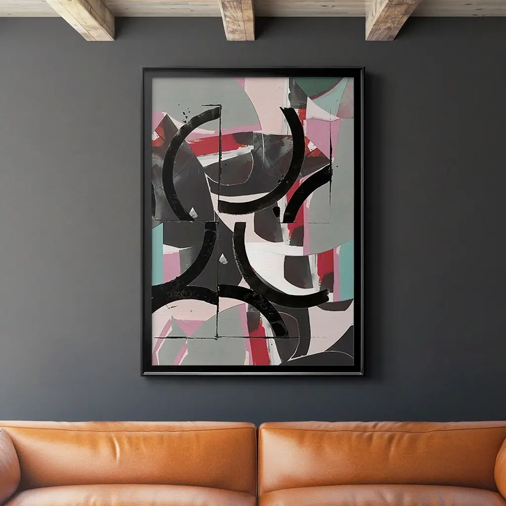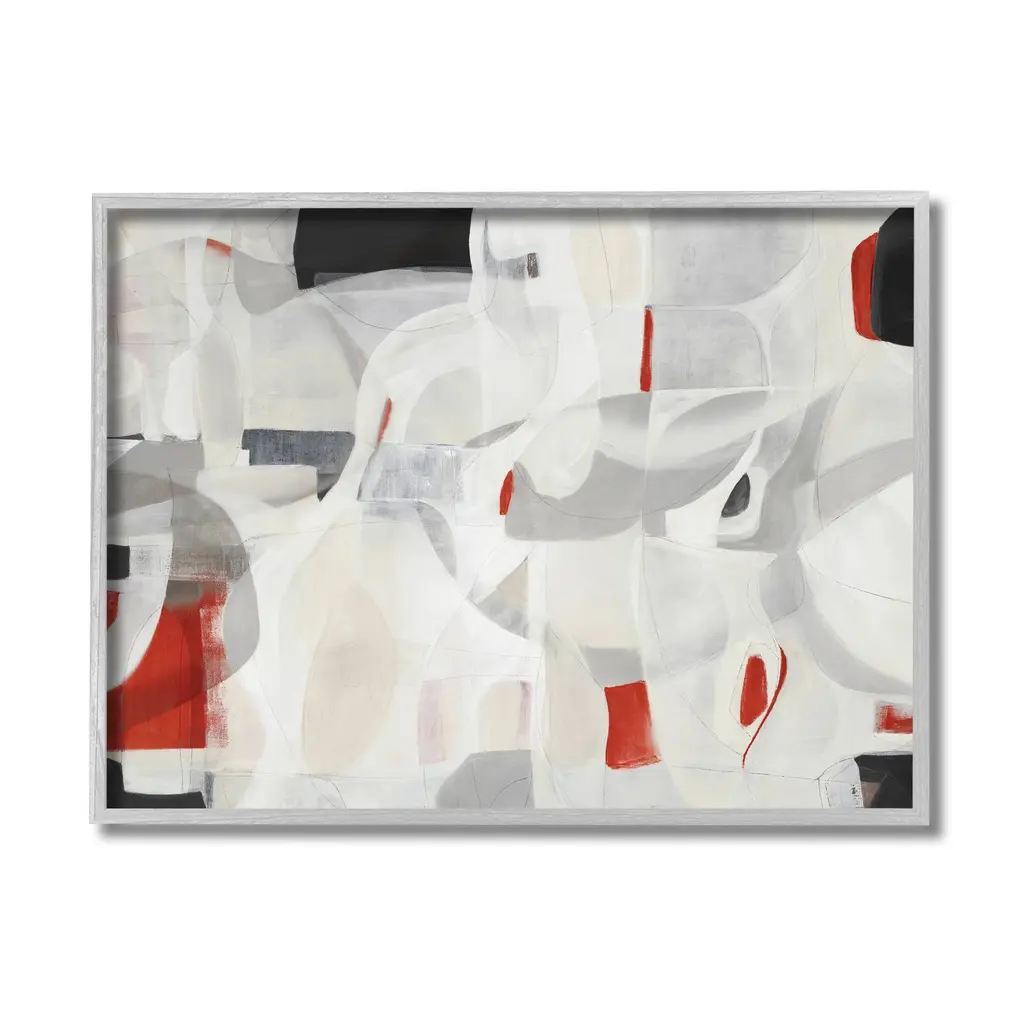 Stupell Contemporary Abstract White Curves Red Highlights Framed Wall Art - 11 X 14 - Black