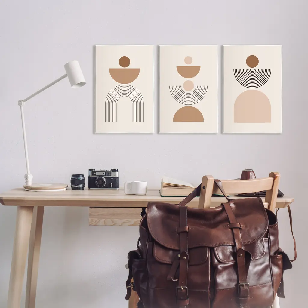 Fill any space with Stupell Wall Art Sets. Our wall plaques start as high-quality lithograph prints mounted on durable 0.5-inch thick MDF wood. Each piece is hand finished and comes with a fresh layer of white foil on the sides to give it a crisp, clean look. Plaques arrive ready to hang without installation and come with removable plastic corners to keep them from damage in transit. Stupell Wall Art is made in the USA.Features: Dimensions: 3 Piece Set, Each Panel is 10 x 0.5 x 15 InchesWall Plaque Set Sizes Include Standard: 3pc, Each is 10 x 0.5 x 15 Oversized: 3pc, Each is 13 x 0.5 x 19Wall Art is Ready to Hang with Hardware Free Hanging. No installation required. For Easy Set Up Lean or Layer Artwork on Shelf or Against Wall.All of our wall plaques start off as high quality lithograph prints that are then mounted on durable 0.5 inch thick MDF wood. Each piece is hand finished and comes with a fresh layer of foil on the sides to give it a crisp clean look. Made In USA.Artwork Relates To: Arch, Modern, Abstract, Boho, ContemporaryDesign by LSR Design Studio