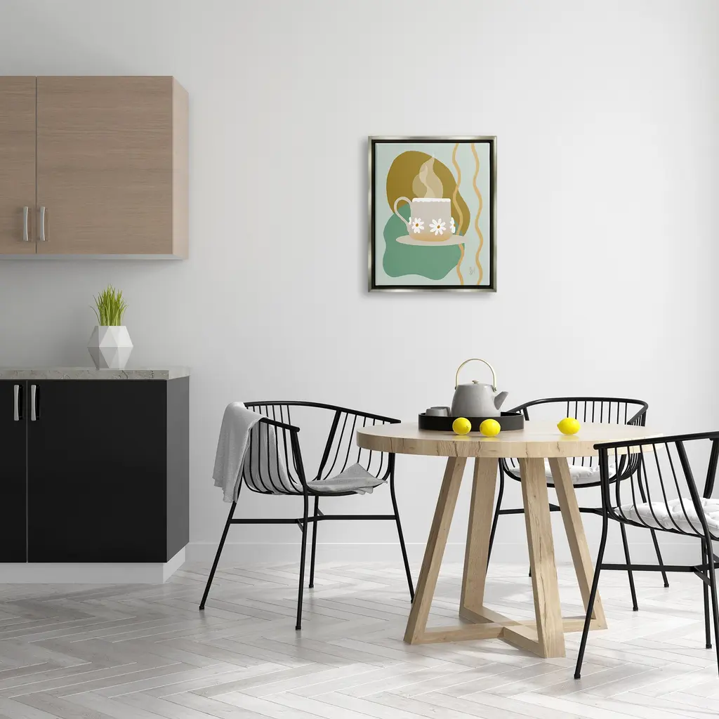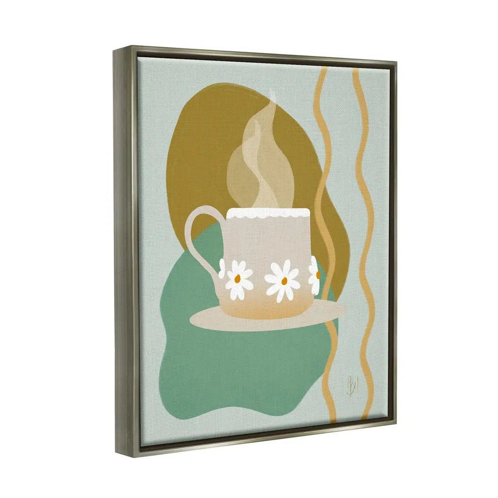 Elevate your home or office to the next level with Stupell Framed Floating Canvas Wall Art. Our premium hand-stretched canvas is mounted securely into a sturdy lightweight frame. The museum-style gap between the wrapped canvas and the box frame gives the illusion of floating artwork. Stupell Wall Art is made in the USA.Features: Dimensions: 17 x 1.7 x 21 Frame, 16 x 1.5 x 20 Canvas ArtFloating Frame Sizes Include Standard: 17 x 1.7 x 21 Oversized: 25 x 1.7 x 31Wall Art is Ready to Hang - No Installation or Hardware Needed. For Easy Set Up Lean or Layer Artwork on Shelf or Against Wall.Our elevated 1.7" Thick Floating Frame is the perfect complement to our canvas style Wall Art. We use only the highest quality inks in house with industry leading printing solutions. Canvas is hand stretched over a durable wood foundation and then mounted securly into a Modern Box Frame. Made in the USA.Artwork Relates To: Cup, Beverage, Coffee, Coffee Cup, Saucer, Kitchen, Diner, Daisy, FlowerDesign by Birch&Ink