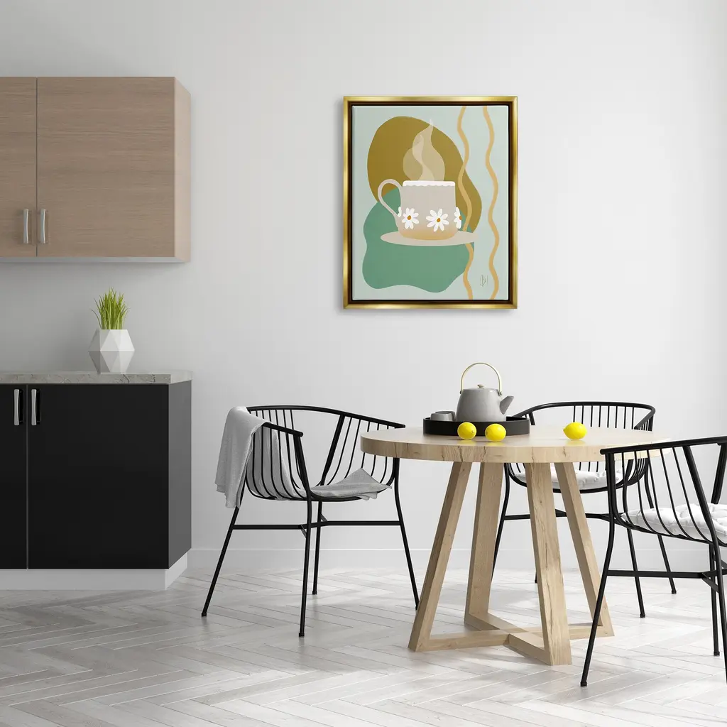 Elevate your home or office to the next level with Stupell Framed Floating Canvas Wall Art. Our premium hand-stretched canvas is mounted securely into a sturdy lightweight frame. The museum-style gap between the wrapped canvas and the box frame gives the illusion of floating artwork. Stupell Wall Art is made in the USA.Features: Dimensions: 17 x 1.7 x 21 Frame, 16 x 1.5 x 20 Canvas ArtFloating Frame Sizes Include Standard: 17 x 1.7 x 21 Oversized: 25 x 1.7 x 31Wall Art is Ready to Hang - No Installation or Hardware Needed. For Easy Set Up Lean or Layer Artwork on Shelf or Against Wall.Our elevated 1.7" Thick Floating Frame is the perfect complement to our canvas style Wall Art. We use only the highest quality inks in house with industry leading printing solutions. Canvas is hand stretched over a durable wood foundation and then mounted securly into a Modern Box Frame. Made in the USA.Artwork Relates To: Cup, Beverage, Coffee, Coffee Cup, Saucer, Kitchen, Diner, Daisy, FlowerDesign by Birch&Ink