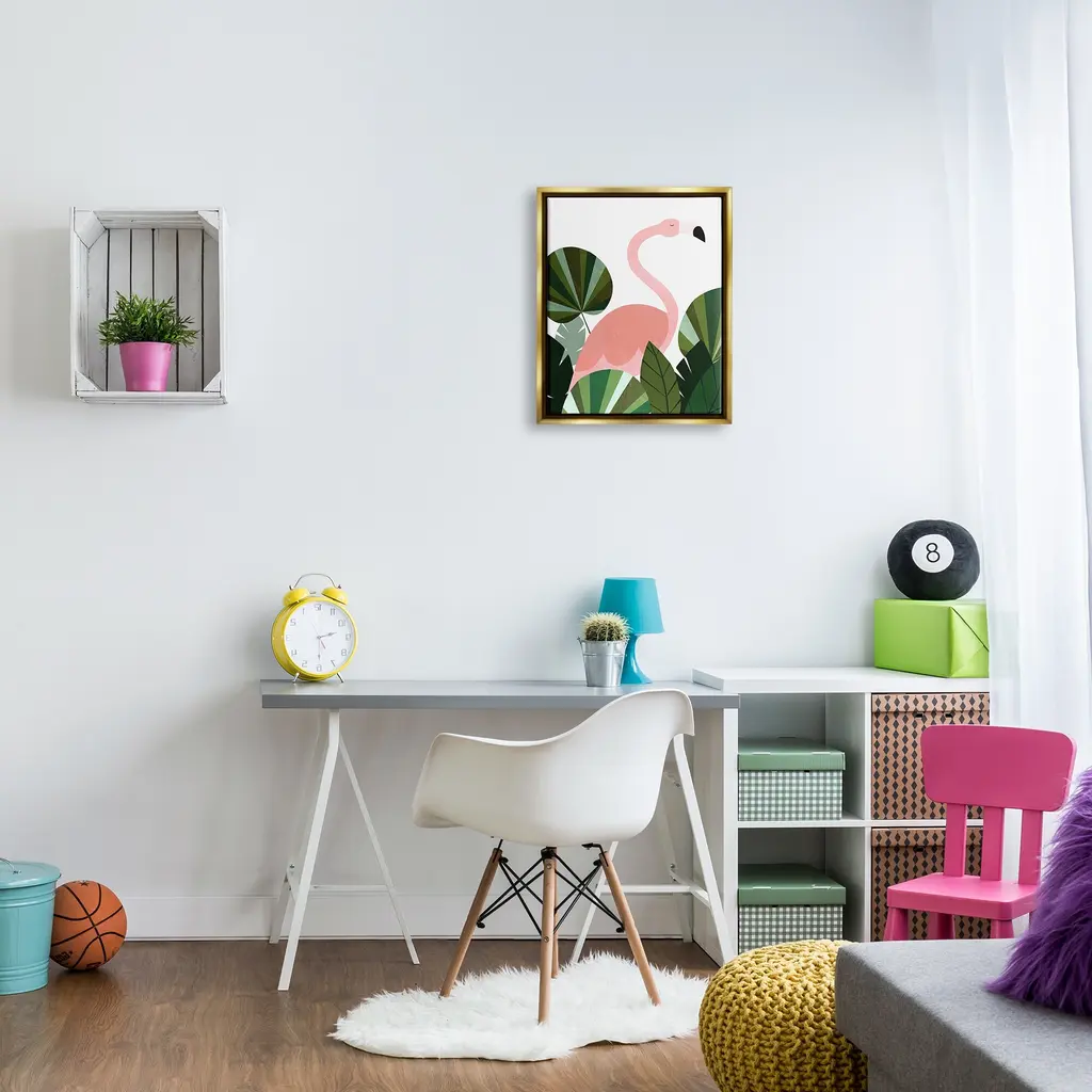 Elevate your home or office to the next level with Stupell Framed Floating Canvas Wall Art. Our premium hand-stretched canvas is mounted securely into a sturdy lightweight frame. The museum-style gap between the wrapped canvas and the box frame gives the illusion of floating artwork. Stupell Wall Art is made in the USA.Features: Dimensions: 17 x 1.7 x 21 Frame, 16 x 1.5 x 20 Canvas ArtFloating Frame Sizes Include Standard: 17 x 1.7 x 21 Oversized: 25 x 1.7 x 31Wall Art is Ready to Hang - No Installation or Hardware Needed. For Easy Set Up Lean or Layer Artwork on Shelf or Against Wall.Our elevated 1.7" Thick Floating Frame is the perfect complement to our canvas style Wall Art. We use only the highest quality inks in house with industry leading printing solutions. Canvas is hand stretched over a durable wood foundation and then mounted securly into a Modern Box Frame. Made in the USA.Artwork Relates To: Animal, Bird, Flamingo, Plant, Tropical, ModernDesign by Emily Kopcik