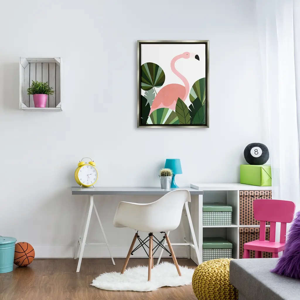 Elevate your home or office to the next level with Stupell Framed Floating Canvas Wall Art. Our premium hand-stretched canvas is mounted securely into a sturdy lightweight frame. The museum-style gap between the wrapped canvas and the box frame gives the illusion of floating artwork. Stupell Wall Art is made in the USA.Features: Dimensions: 17 x 1.7 x 21 Frame, 16 x 1.5 x 20 Canvas ArtFloating Frame Sizes Include Standard: 17 x 1.7 x 21 Oversized: 25 x 1.7 x 31Wall Art is Ready to Hang - No Installation or Hardware Needed. For Easy Set Up Lean or Layer Artwork on Shelf or Against Wall.Our elevated 1.7" Thick Floating Frame is the perfect complement to our canvas style Wall Art. We use only the highest quality inks in house with industry leading printing solutions. Canvas is hand stretched over a durable wood foundation and then mounted securly into a Modern Box Frame. Made in the USA.Artwork Relates To: Animal, Bird, Flamingo, Plant, Tropical, ModernDesign by Emily Kopcik