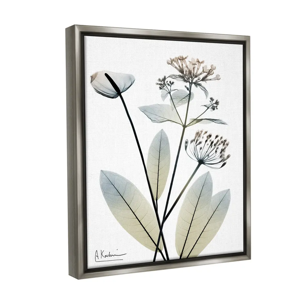 Elevate your home or office to the next level with Stupell Framed Floating Canvas Wall Art. Our premium hand-stretched canvas is mounted securely into a sturdy lightweight frame. The museum-style gap between the wrapped canvas and the box frame gives the illusion of floating artwork. Stupell Wall Art is made in the USA.Features: Dimensions: 17 x 1.7 x 21 Frame, 16 x 1.5 x 20 Canvas ArtFloating Frame Canvas Products are available in sizes 17"x21" and 25"x31". All Floating Frame Canvas Products have a 1.7" Depth.Wall Art is Ready to Hang with Hardware Free Hanging. No Installation required. For Easy Set Up Lean or Layer Artwork on Shelf or Against Wall. Artwork is Permently Fixed into the Frame.Our elevated 1.7" Thick Floating Frame is the perfect complement to our canvas style Wall Art. We use only the highest quality inks in house with industry leading printing solutions. Canvas is hand stretched over a durable wood foundation and then mounted securly into a Modern Box Frame. Made in the USA.Artwork Relates To: Flower, Plant, Anther, Petal, Minimal, Modern, Abstract, Leaf, BotanicalDesign by Albert Koetsier